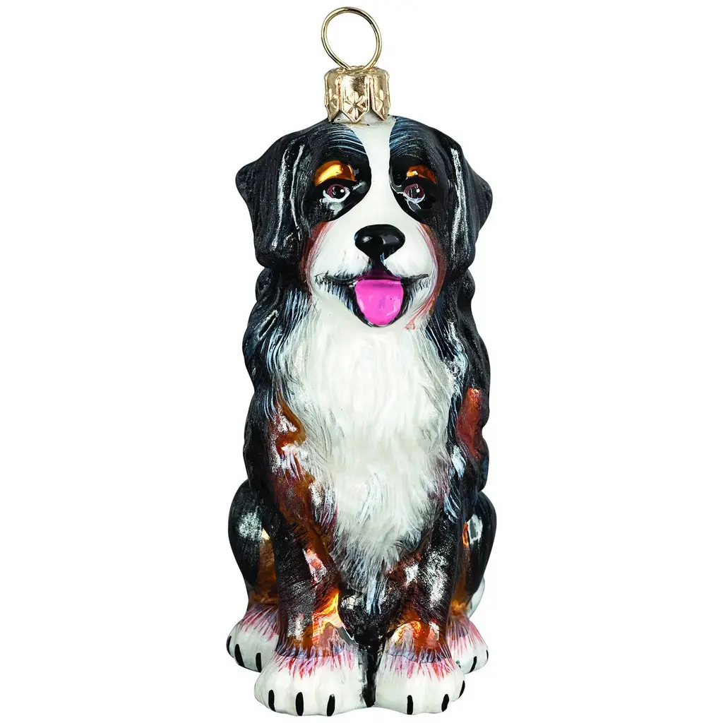 A charming addition to the tree, this Bernese Mountain Dog ornament is handcrafted of mouth-blown glass and hand-painted by artisans in Poland.