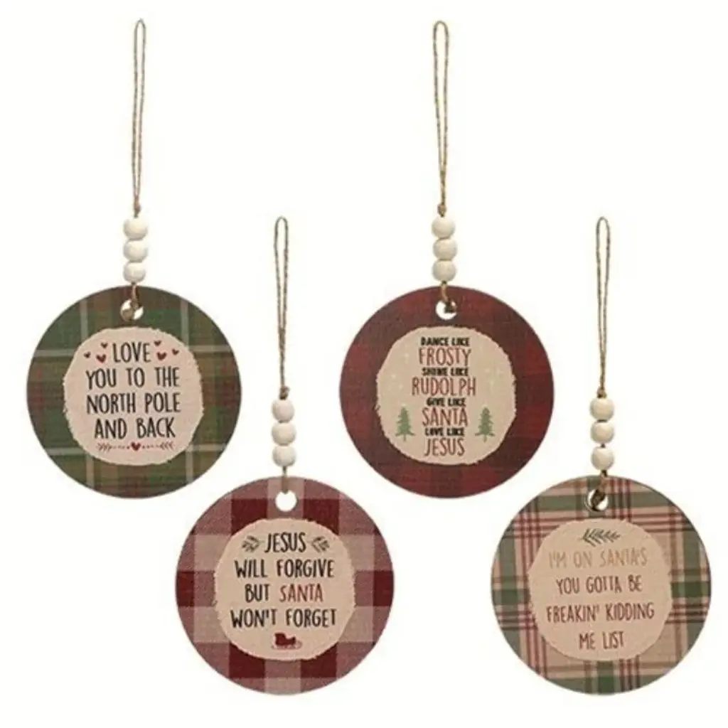 Specification: Description:Enhance your holiday décor with these charming white and red wooden dog bone ornaments, designed to celebrate the joy pets bring during Christmas. Each ornament is crafted from durable wood with a lightly distressed finish and features festive red lettering. Choose from three delightful sayings: "Jingle Bells & Happy Tails This Christmas," "Christmas is Better with a Dog," or "We Woof You a Merry Christmas." Measuring 5 inches wide by 2.5 inches high, these lightweight ornaments are easy to display using their sturdy metal wire hangers. Perfect for dog lovers, these unique designs add a cheerful touch to any holiday setting. Items are sold individually.