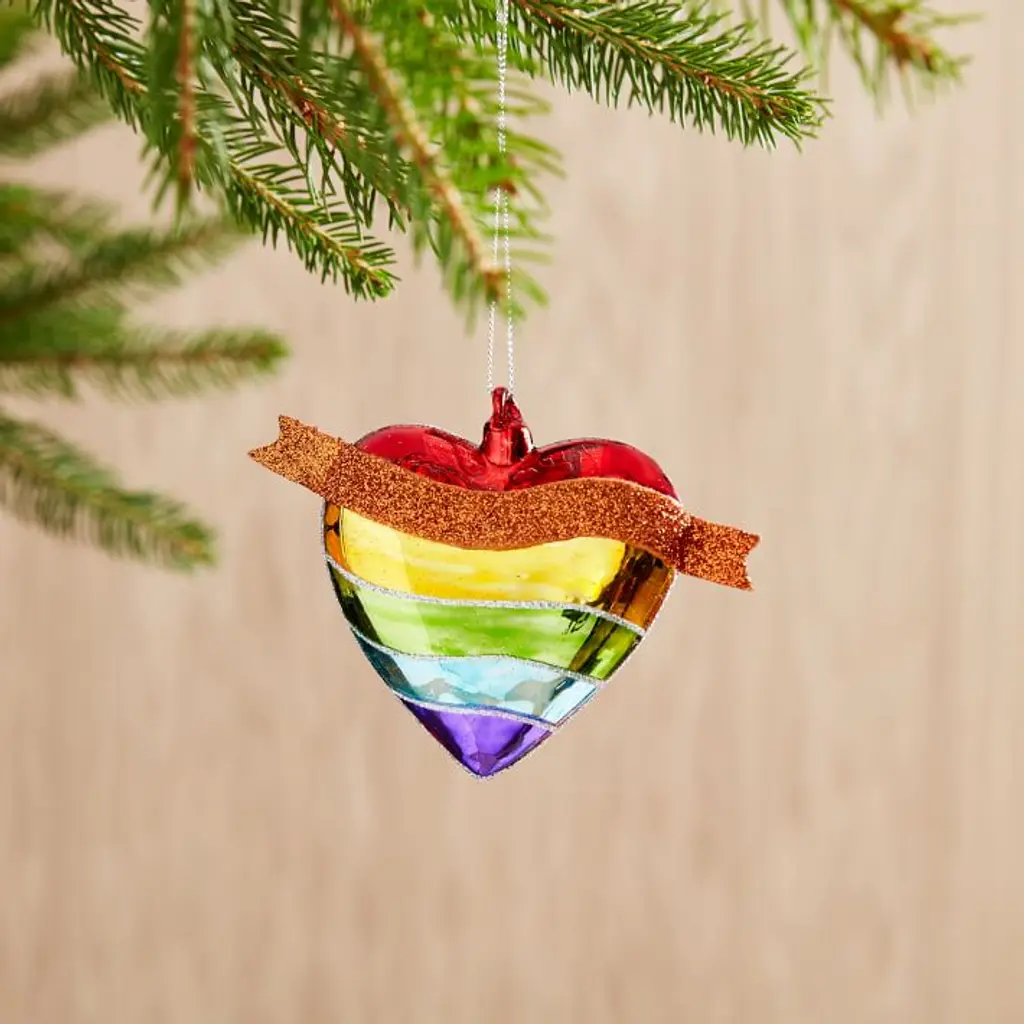 Blown Glass Rainbow Heart Ornament Benefitting The Trevor Project