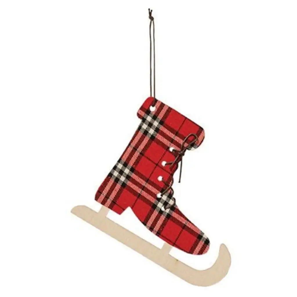 Description : Ornament is a primitive horse ornament with a fluffy black mane, wooden dowel legs, and a red and black buffalo check saddle. Ornament has a string for hanging display, but it can also be displayed freestanding on shelves and tabletops Specification