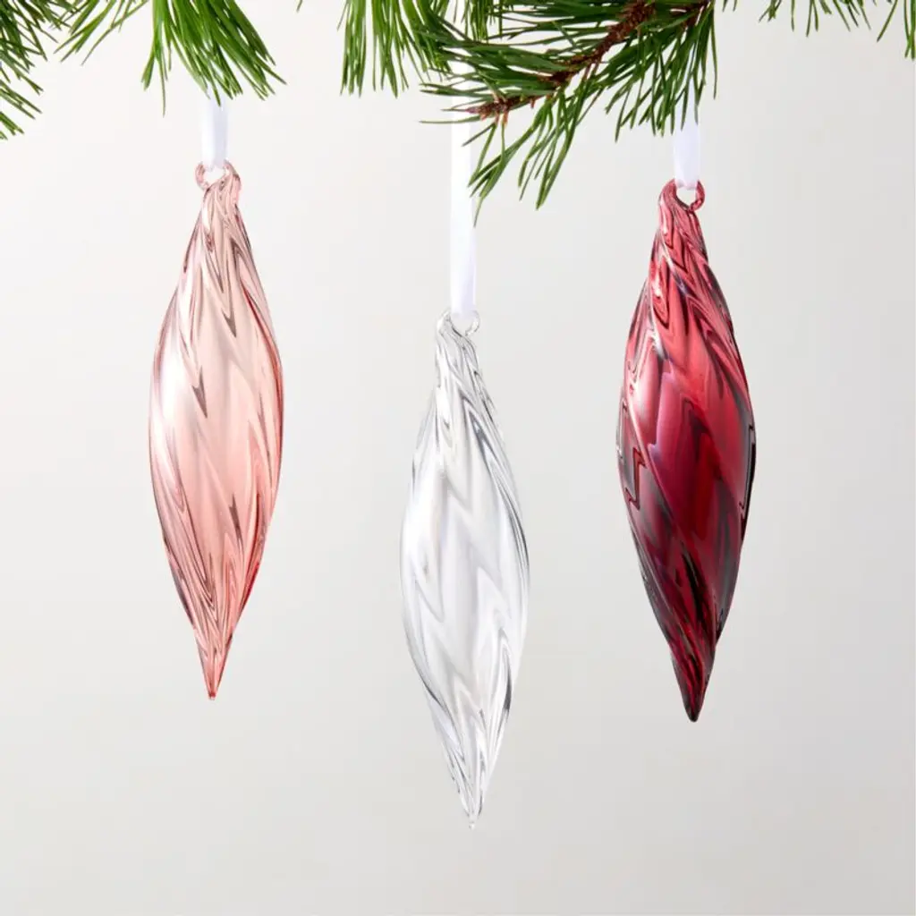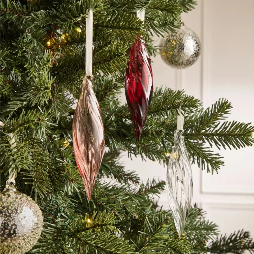 Handblown pink glass ornament by award-winning French design duo dach&zephir features a twisted design that looks timeless. Pair with the other Calista ornaments to trim an elegant tree. CB2 exclusive.