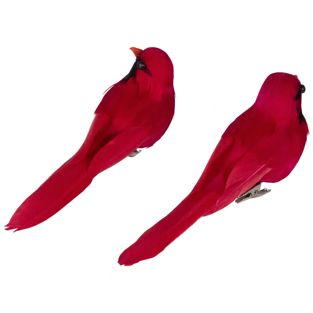 Bring the beauty of the outdoors inside and elevate your tree decor with this delightful set of two cardinal ornaments. Each ornament boasts a fully-dimensional red and black feathered cardinal design, bringing a festive flair to any setting. Ready to attach with metal silver-tone alligator clips, these ornaments are perfect for adorning Christmas trees, wreaths, or accenting holiday floral arrangements and centerpieces. Product Features: Set of 2 Christmas clip-on ornaments Red and black feathered cardinal design Fully-dimensional ornaments Come ready to attach with metal silver-tone alligator clips Perfect for sprucing your Christmas tree or accenting holiday floral arrangements Recommended for indoor use only Dimensions: 2"H x 2"W x 6"D Material(s): foam/plastic/metal