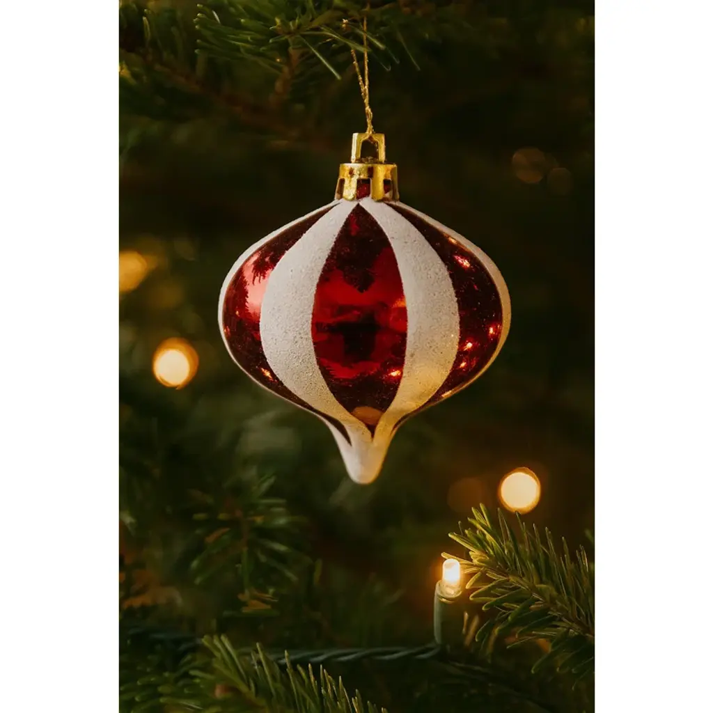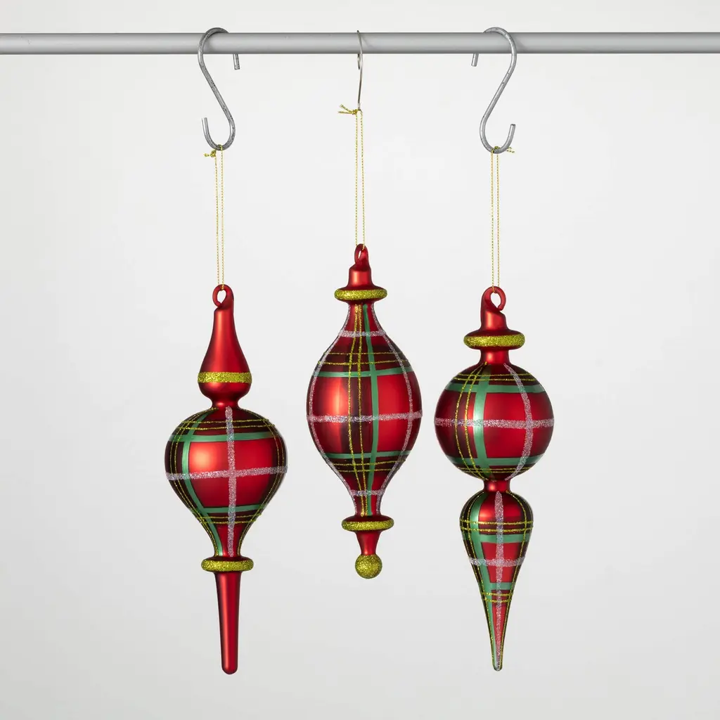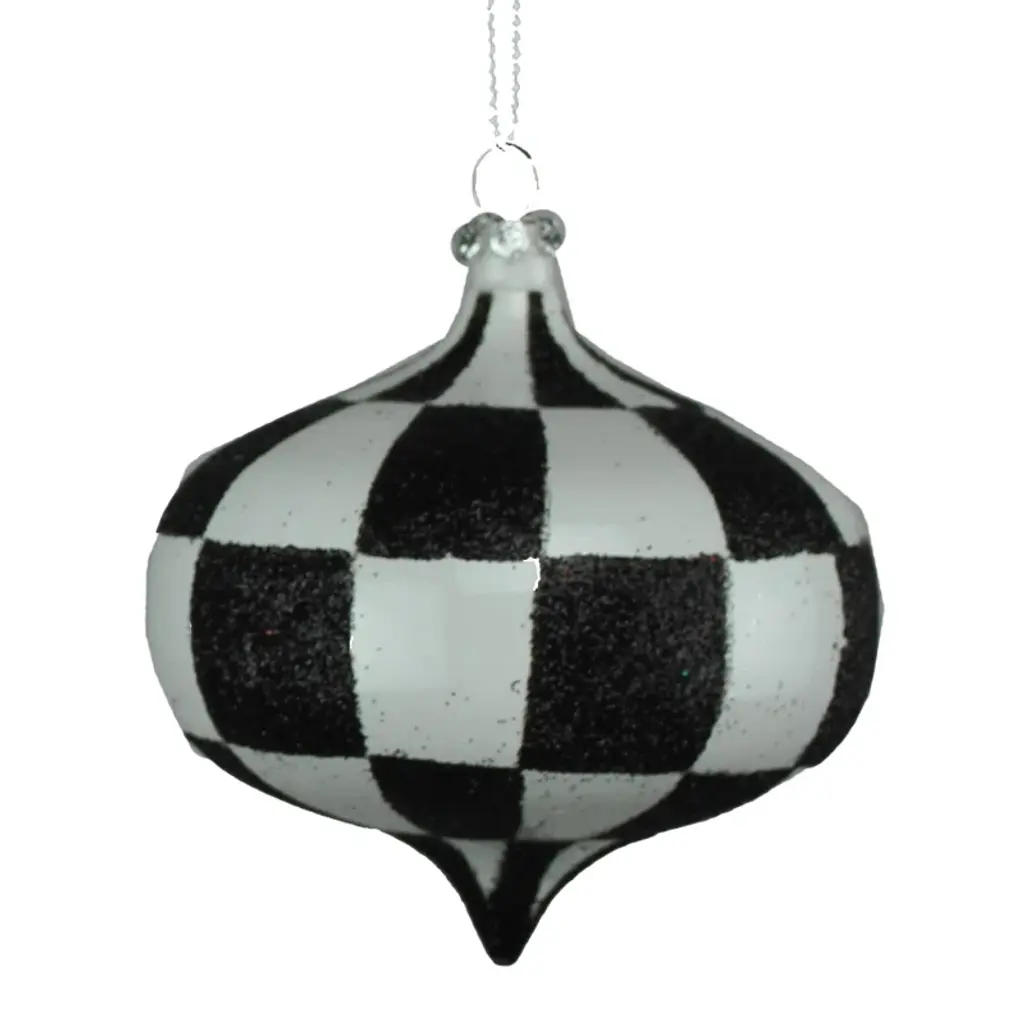 Add MacKenzie-Childs signature charm to your Christmas season with the Check It Out Drop Glass Ornament. This mouth-blown ornament features a round bauble dressed in our iconic red check pattern resting upon a teardrop bottom in green stripes. The stunning collectible comes with an authentic brass logo charm, making it a wonderful gift or addition to your own Christmas tree.