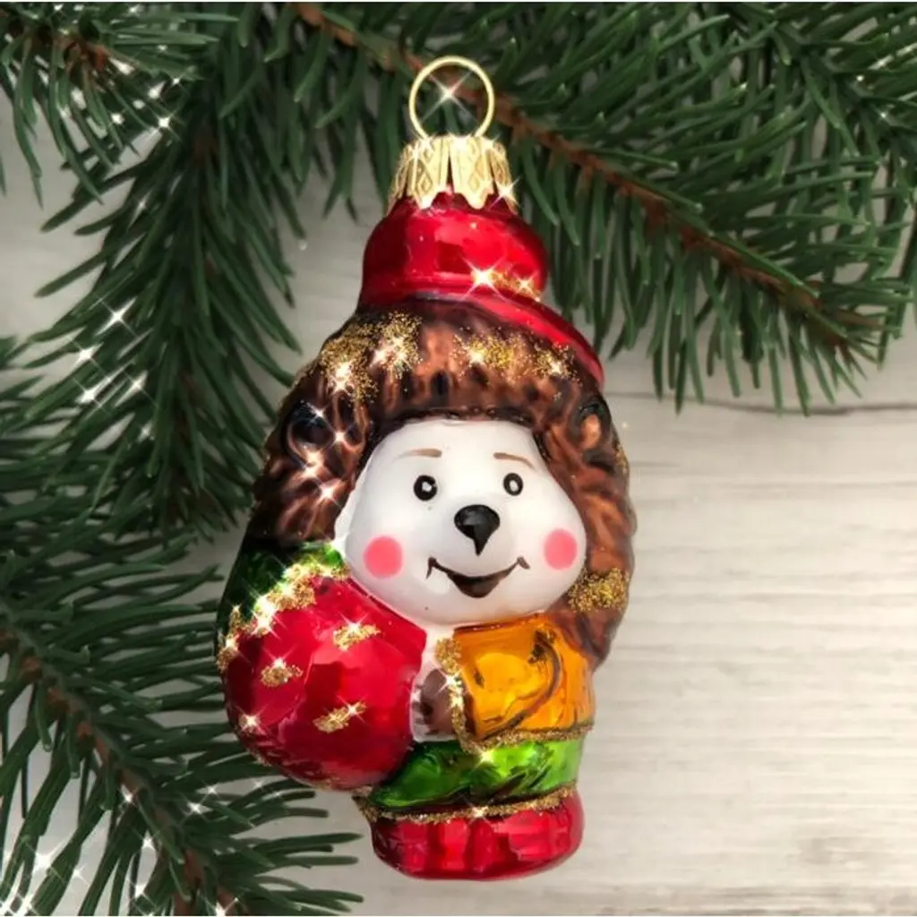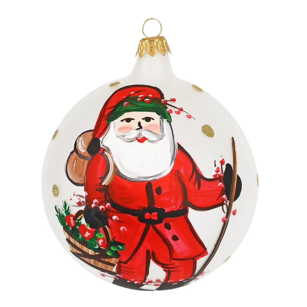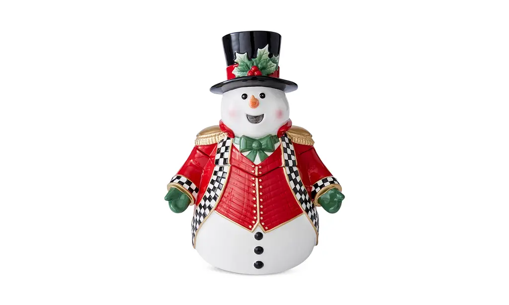 Add MacKenzie-Childs signature charm to your Christmas season with the Check It Out Snowman Ornament. This mouth-blown ornament shows our frosty friend with a candy cane and tiny tree in tow. The stunning collectible comes with an authentic brass logo charm, making it a wonderful gift or addition to your own Christmas tree.