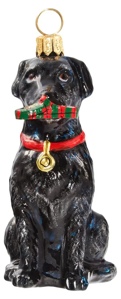 A charming addition to the tree, this Labrador Retriever ornament is handcrafted of mouth-blown glass and hand-painted by artisans in Poland.