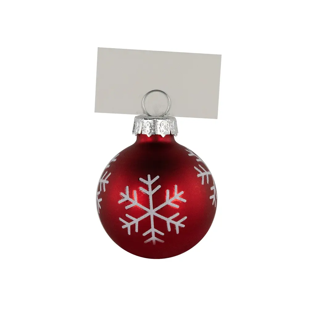 Christmas Glass Ball Ornament With Snowflake Place Card Holders - 2" - Red - Set Of 6 - 1 Piece - Red