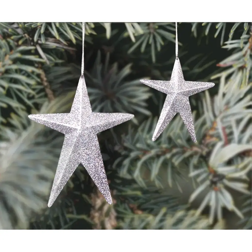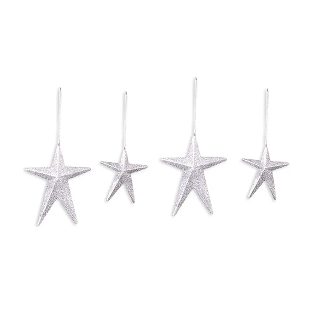 Christmas Silver Star Ornaments, Set Of 4 - Multi