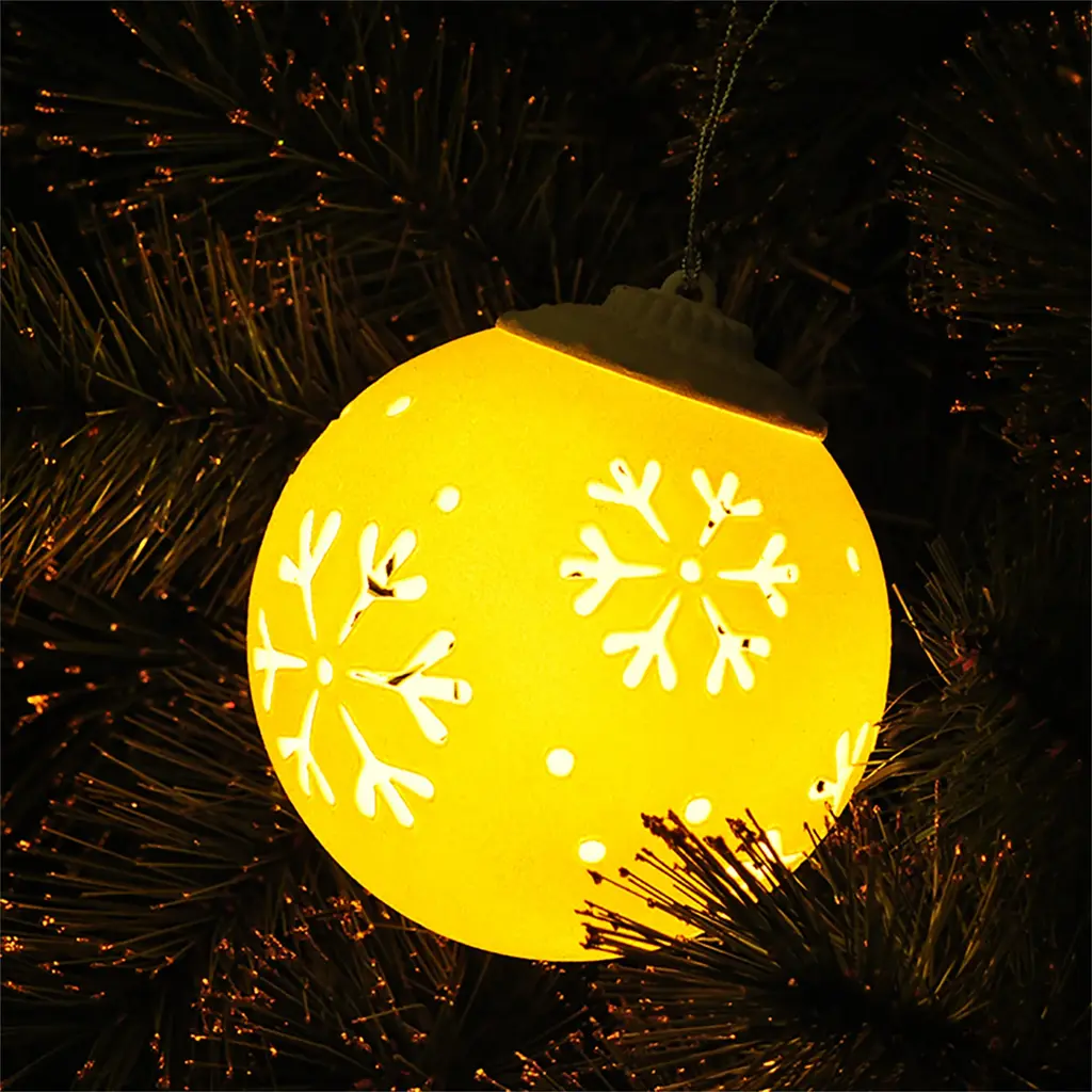 1.Product contents:used for hung on Christmas tree as decorations, home ornament, christmas gift, and so on.The on/off is at the bottom of the product.2.Christmas decorations: the inflatable Christmas ball has a maximum diameter of about 4 inches, classic Christmas colors with delicate white snowflake patterns, bring you a strong festival atmosphere, make your indoor and outdoor decorations more eye-catching.3.Wide applications: this snowflake ball ornaments are intended for indoor or outdoor use, make great addition to your holiday decoration, suitable for Christmas,wedding,engagement,anniversary, party, as ornaments on porch, banister, around Christmas tree, or set up on the grass.4.High quality materials: Collision avoidance materials, Private moulds ensure unique shape, and there are no similar products.5.Easy operation: These ornaments are ready to hang out of box with a pre-looped ribbons. They are also very light weight and won't weigh down the Christmas tree branches which allows for more decorations.