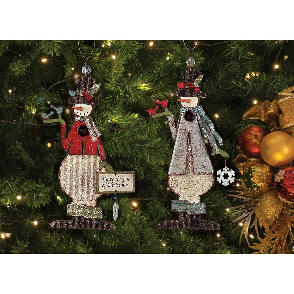 Christmas Standing Snowman Ornament, Set Of 2 - Multi