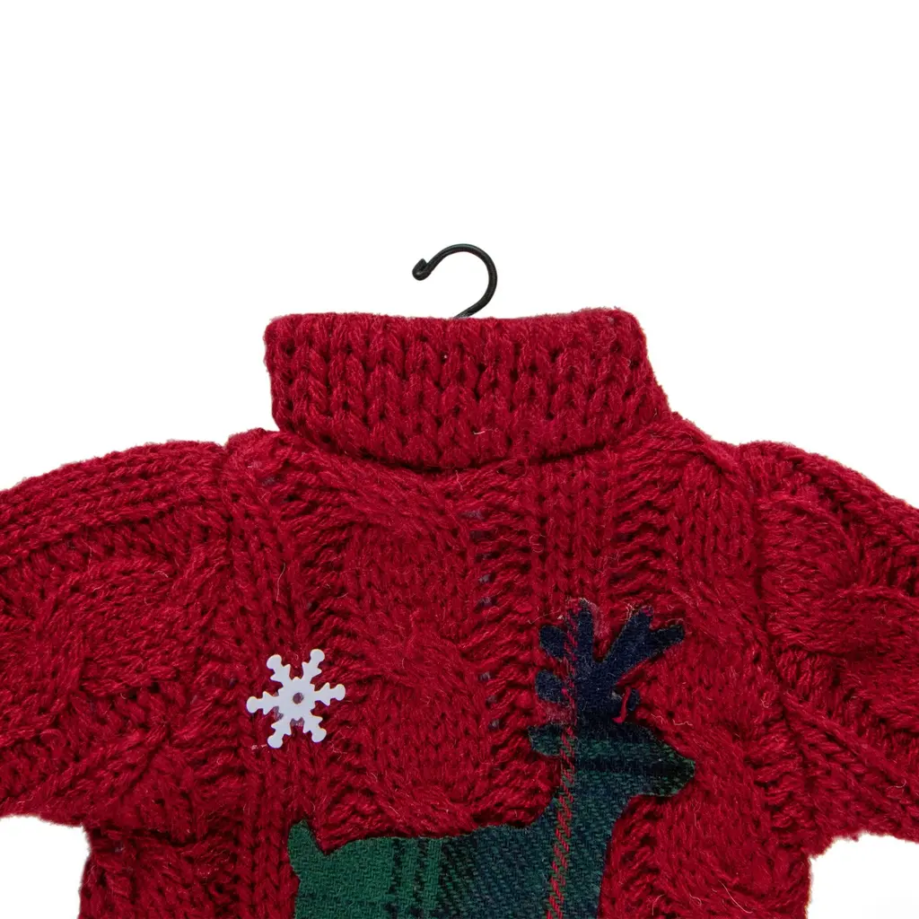 Specification: Description:Add a charming and cozy touch to your Christmas tree with this decorative Christmas Sweater Ornament. Made from soft felt fabric, the ornament features a vibrant red sweater with white cuffs and a green and white stitched tree design. The design is enhanced with ivory fringe ribbon for added detail. Measuring 4.5" in height, 5.5" in width, and 0.25" in depth, this festive ornament comes with a convenient string hanger for easy display. Perfect for bringing a warm, welcoming atmosphere to your holiday décor, this sweater ornament is a delightful addition to any Christmas tree or holiday-themed display.