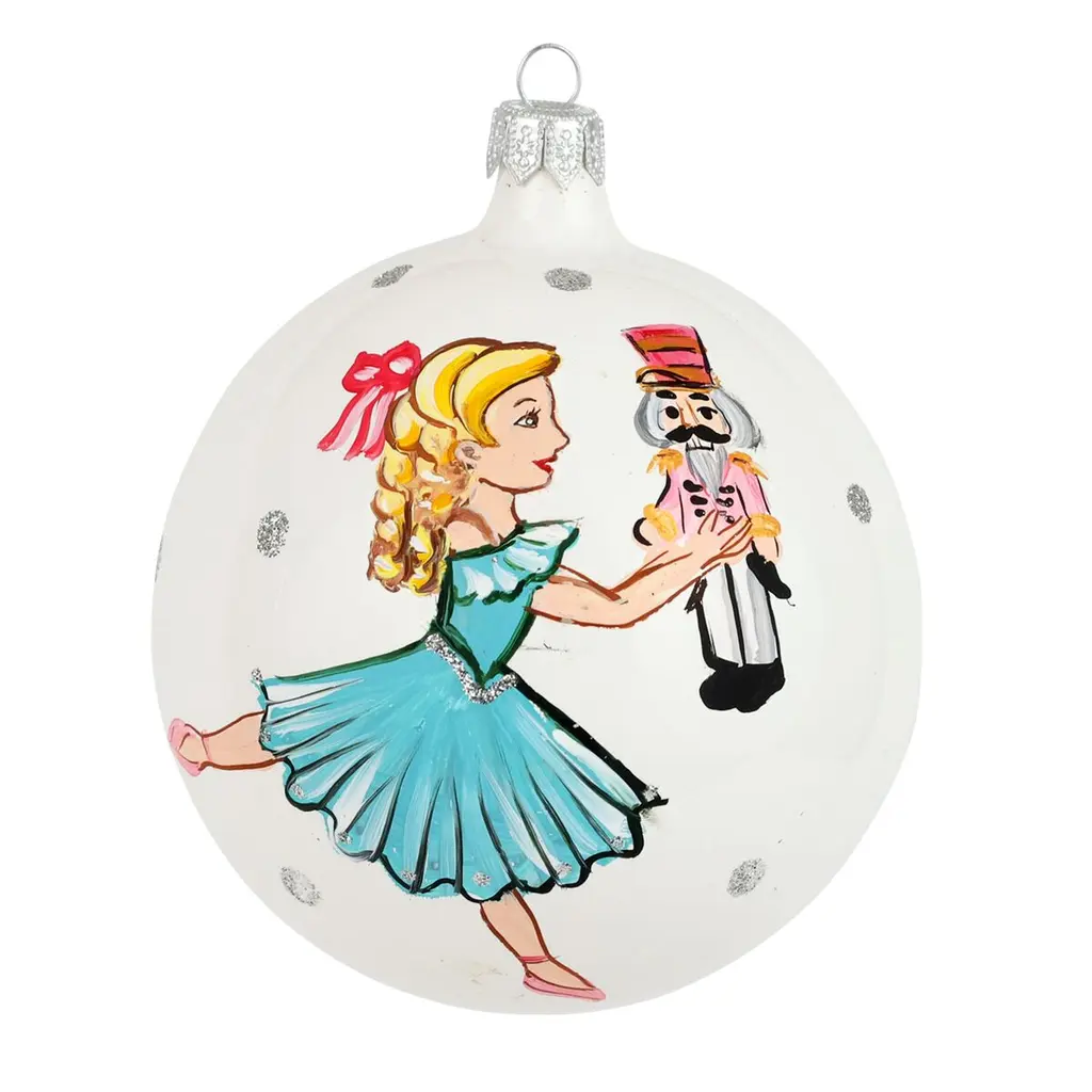 Capture the enchantment of the holiday season with our Clara and the Nutcracker Glass Ornament, crafted in Poland and dated with the year 2024. Adorned with intricate details, this ornament showcases Clara gracefully dancing in front of a festive tree, evoking a timeless sense of joy and celebration. The delicate hand-blown glass and hand-painted accents reflect the artistry and craftsmanship synonymous with Jay Strongwater. Embrace the magic of tradition with this enchanting ornament, a treasure to cherish for years to come.