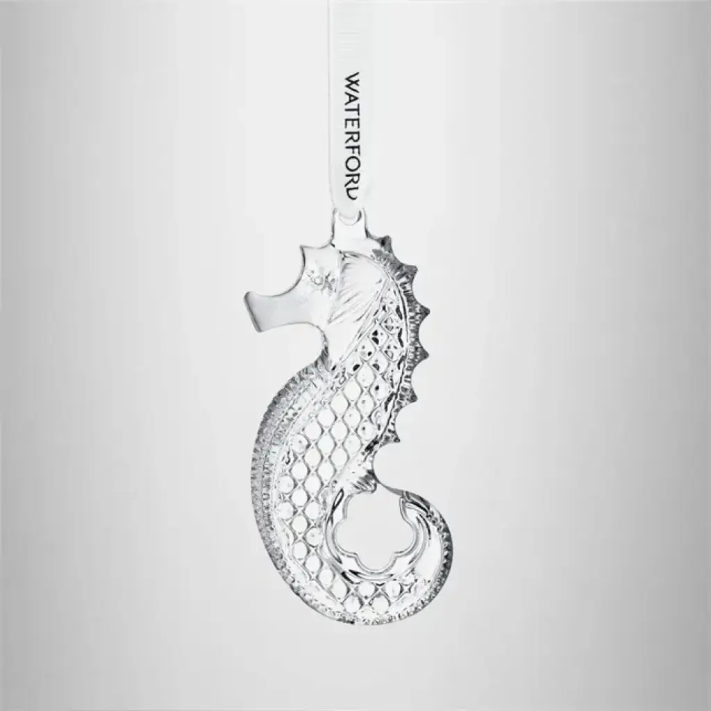 This elegant seahorse features flowing tones of blue and violet, accented by European crystals and delicate touches of lustrous gold. A sophisticated nod to the beauty of the sea.