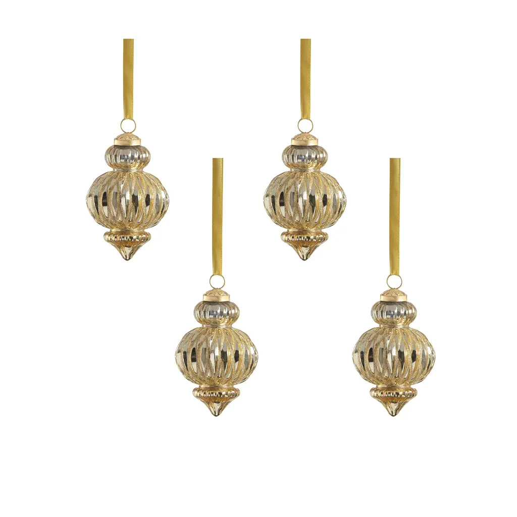 Cola Gleaming Ripple Hanging Ornaments, Set Of 4 - Glass - Gold