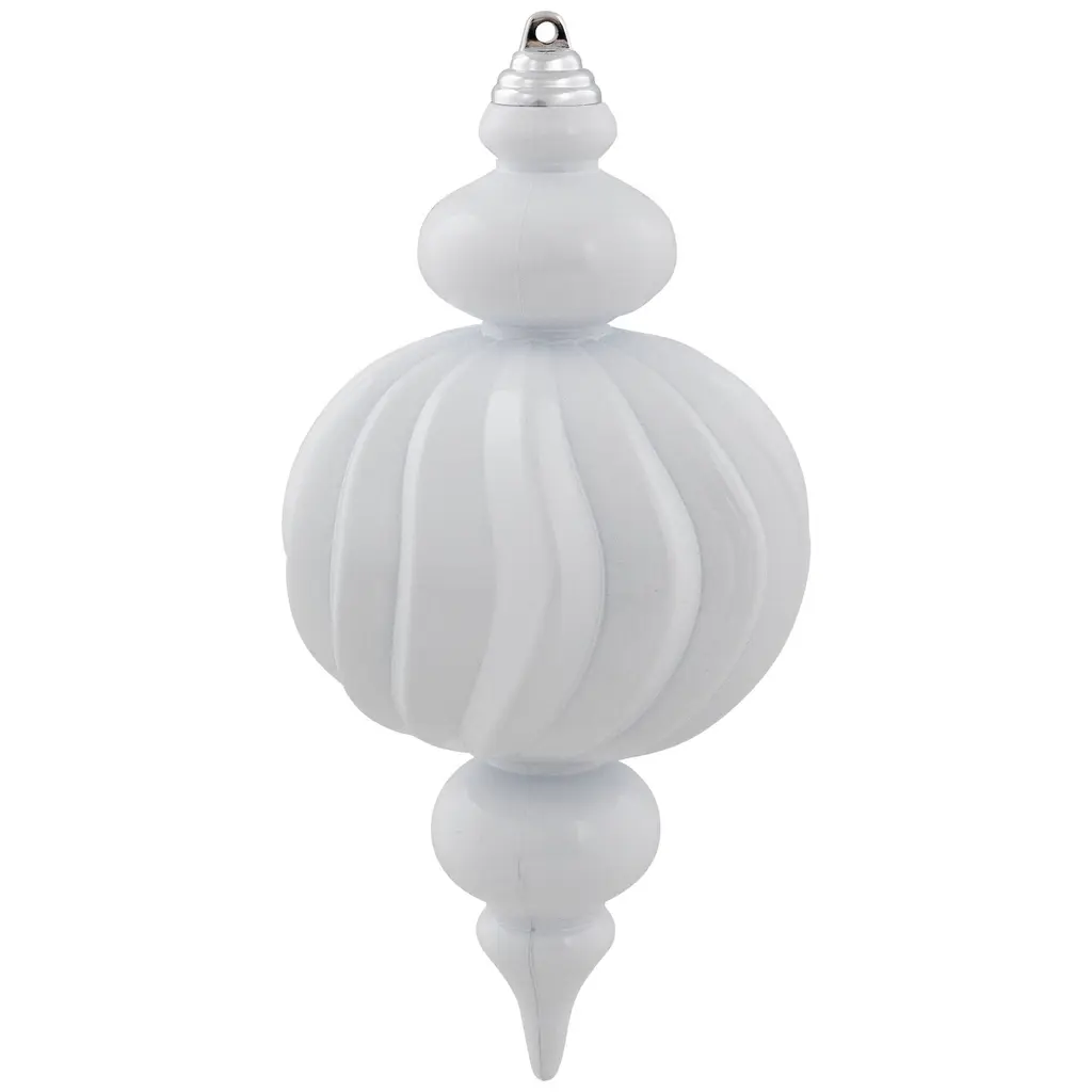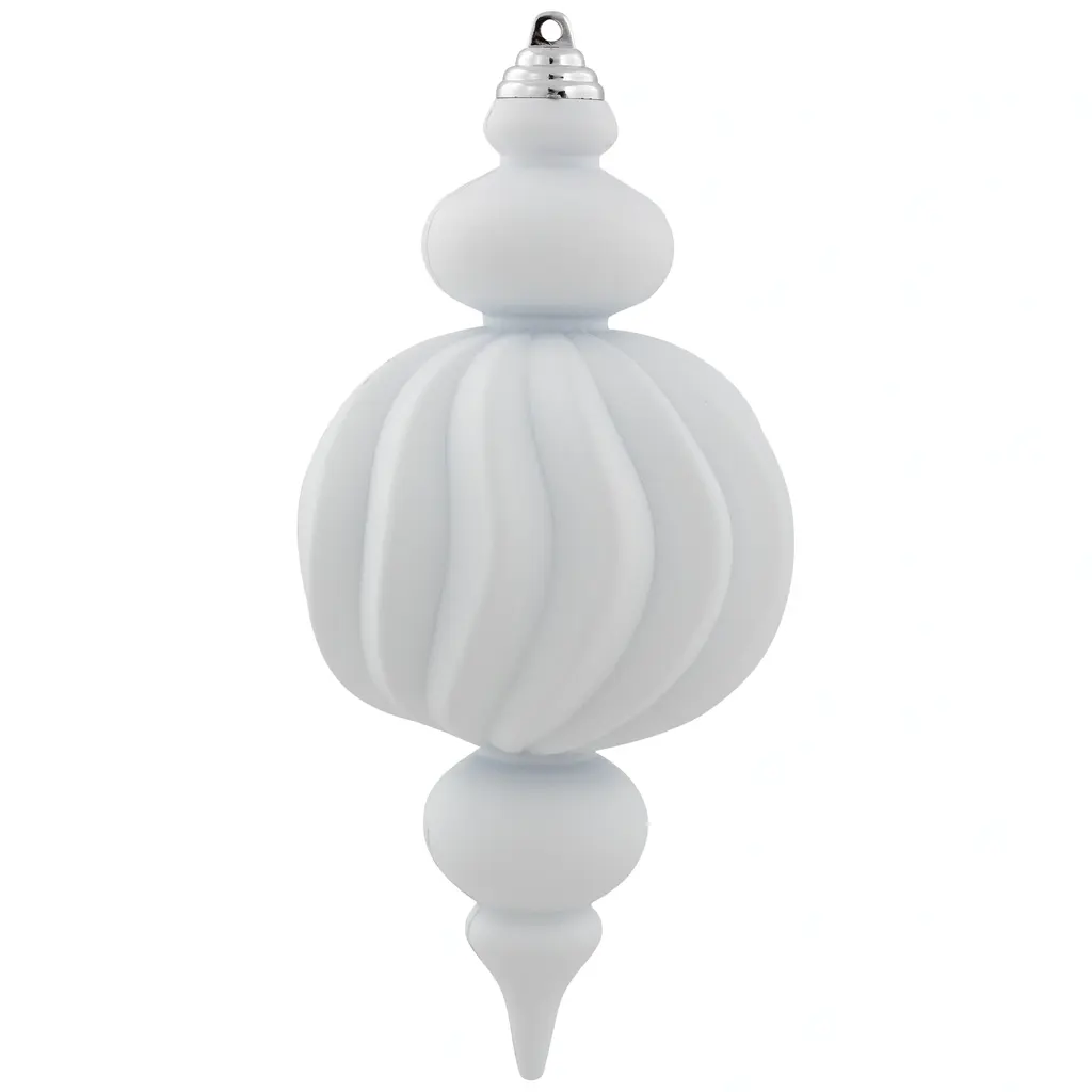 Deck the halls with timeless elegance using our commercial-size shatterproof finial Christmas ornaments in radiant white. This set includes two matte finish ornaments and two shiny finish ornaments, adding elegance and charm to any holiday decor. These ornaments bring the joy of the season without the worry of breakage, ensuring your holiday celebrations sparkle with peace of mind. Perfect for adorning trees, wreaths, garlands, and more. Product Features: 4ct white Christmas finial ornaments Set includes 2 matte and 2 shiny ornaments Commercial size with a textured finish Large enough to decorate a large or commercial-size trees Can be used as a standalone Christmas hanging decoration Equipped with silver ornament caps and hanging cords For indoor use - if using outdoors place under a covered area Dimensions: 10" high x 4" diameter Material(s): plastic Note: Set includes 4 of the item shown; for a total of 4 ornaments