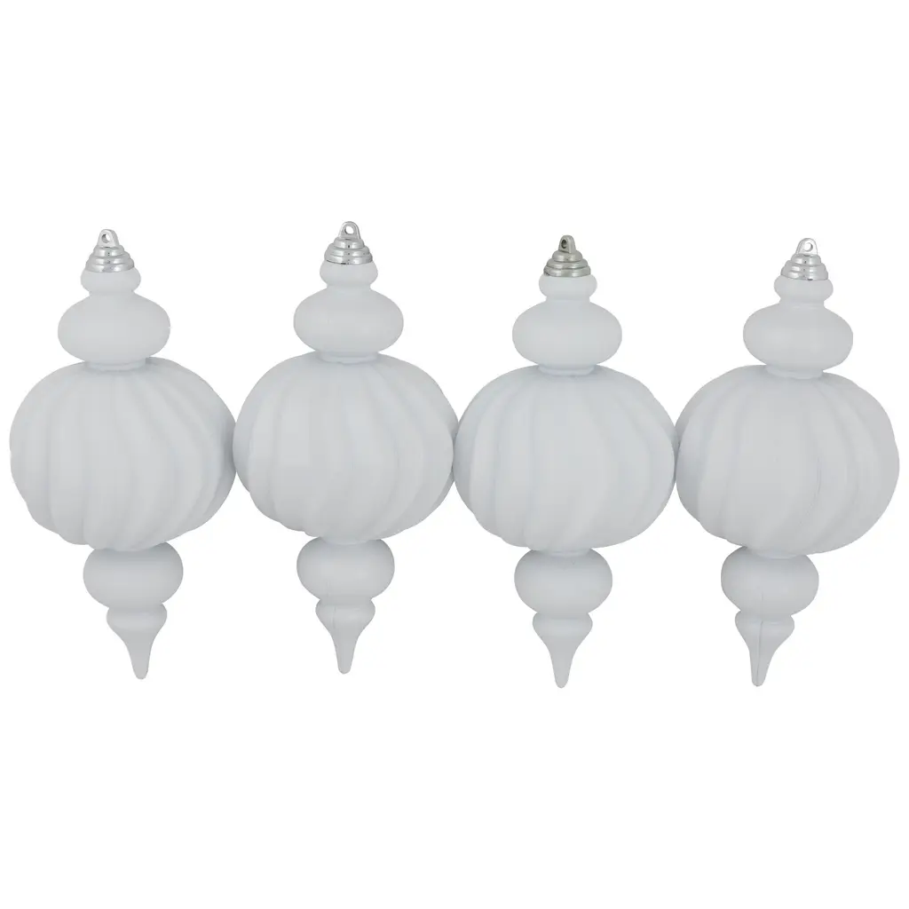 Commercial Size Shatterproof Finial Christmas Ornaments - 10" - White - Set Of 4 - Plastic - White