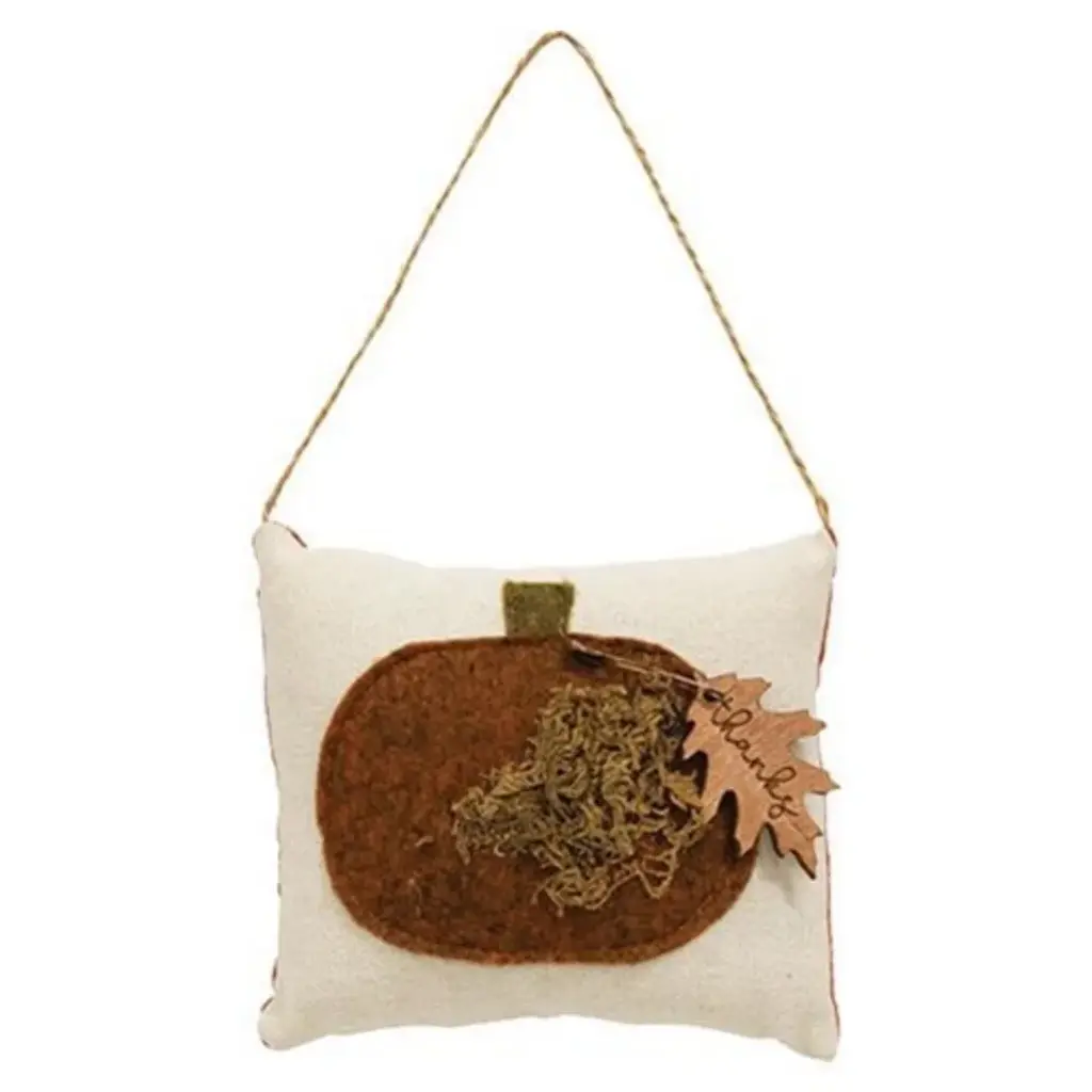 Cream Fall Pumpkin Felt Ornament - 4" High By 4.5" Wide By 1" Deep - Cream