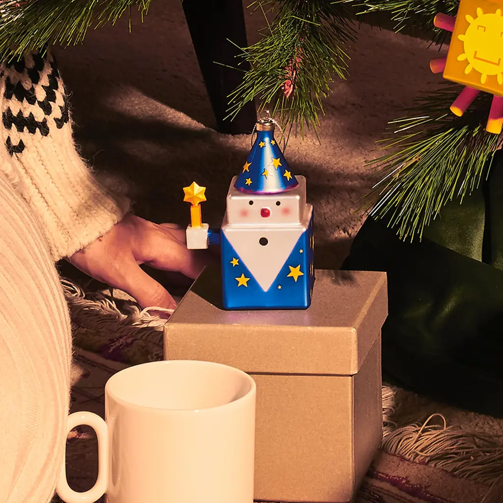 Cubomago is not just another Christmas decoration; it’s a delightful twist on seasonal tradition. Donning a long blue robe shimmering with stars, this whimsical character stands as a testament to innovative festive design. Moving away from the conventional, Cubomago brings humor, charm, and a touch of the unexpected to your Christmas tree. Each star on his robe twinkles with tales of festive magic, while the ironic nod to classic baubles ensures smiles and conversations around the tree. In a season filled with familiar sights, this unique piece breaks the mold, inviting onlookers to embrace the joy of unconventional holiday spirit. With Cubomago, every glance at your tree becomes a delightful discovery, redefining the magic of Christmas.