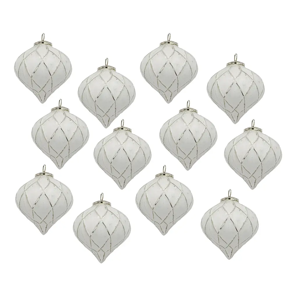 D2.8x3"h Christmas Ball Ornaments,glass Decorative Hanging Ball Christmas Tree Ornaments, Set Of 12 - White