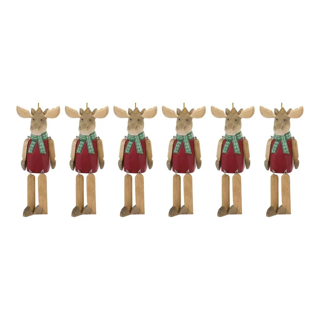 Dangle Moose Ornament (Set Of 6) - 3.5"l X 2.5"w X 9"h - Brown/red