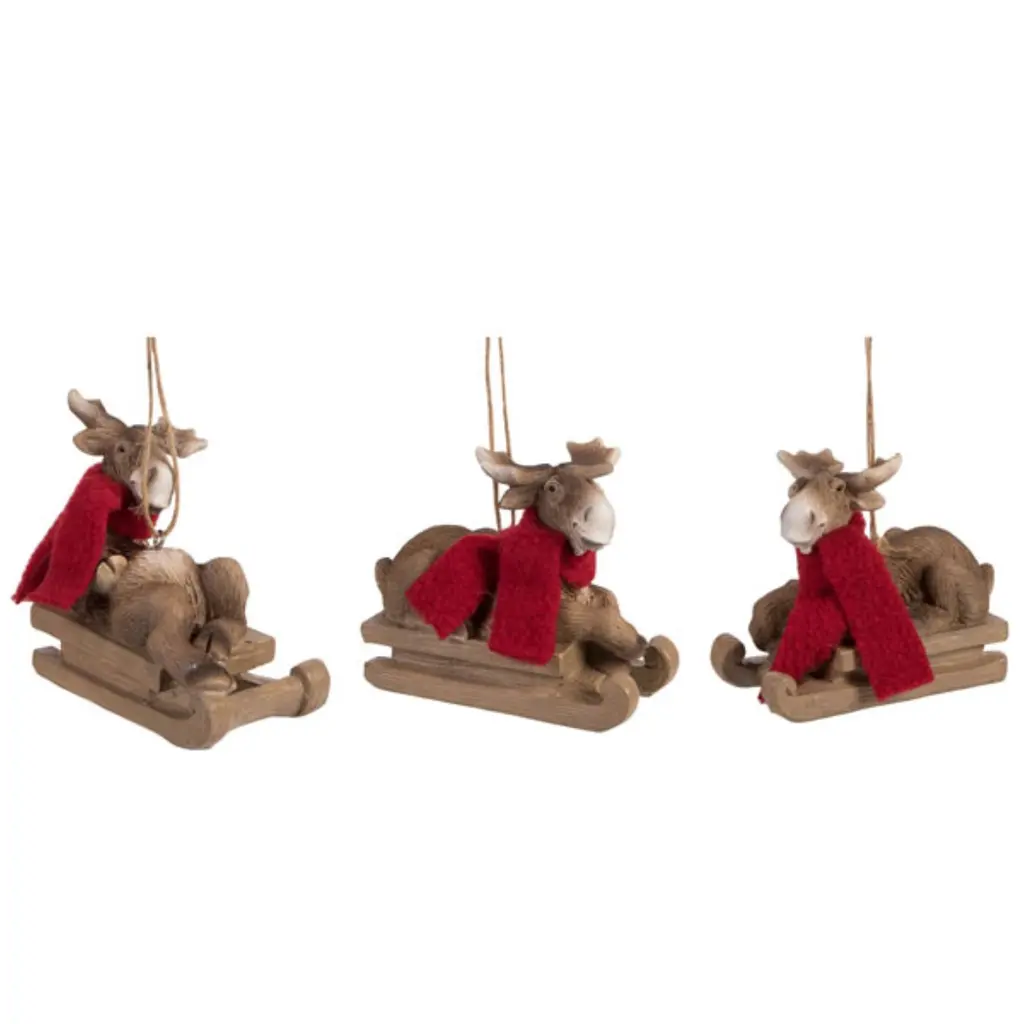 Get into the holiday spirit with this set of Dangle Moose Ornaments! Whether you're adding a touch of cheer to your tree or gifting to a loved one, these ornaments will definitely bring smiles to your home. With festive red and green tones, carved design, and a quality solid wood construction, these joyful decorations are sure to last for years to come! Add a little something special this holiday season with this memorable set of ornaments.