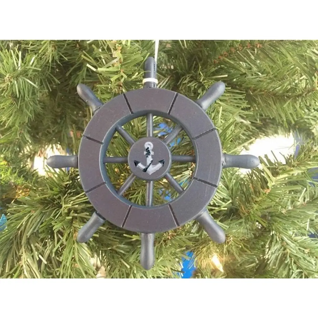 Dark Blue Decorative Ship Wheel With Anchor Christmas Tree Ornament 6" - 6" L X 0.5" W X 6" H - Blue