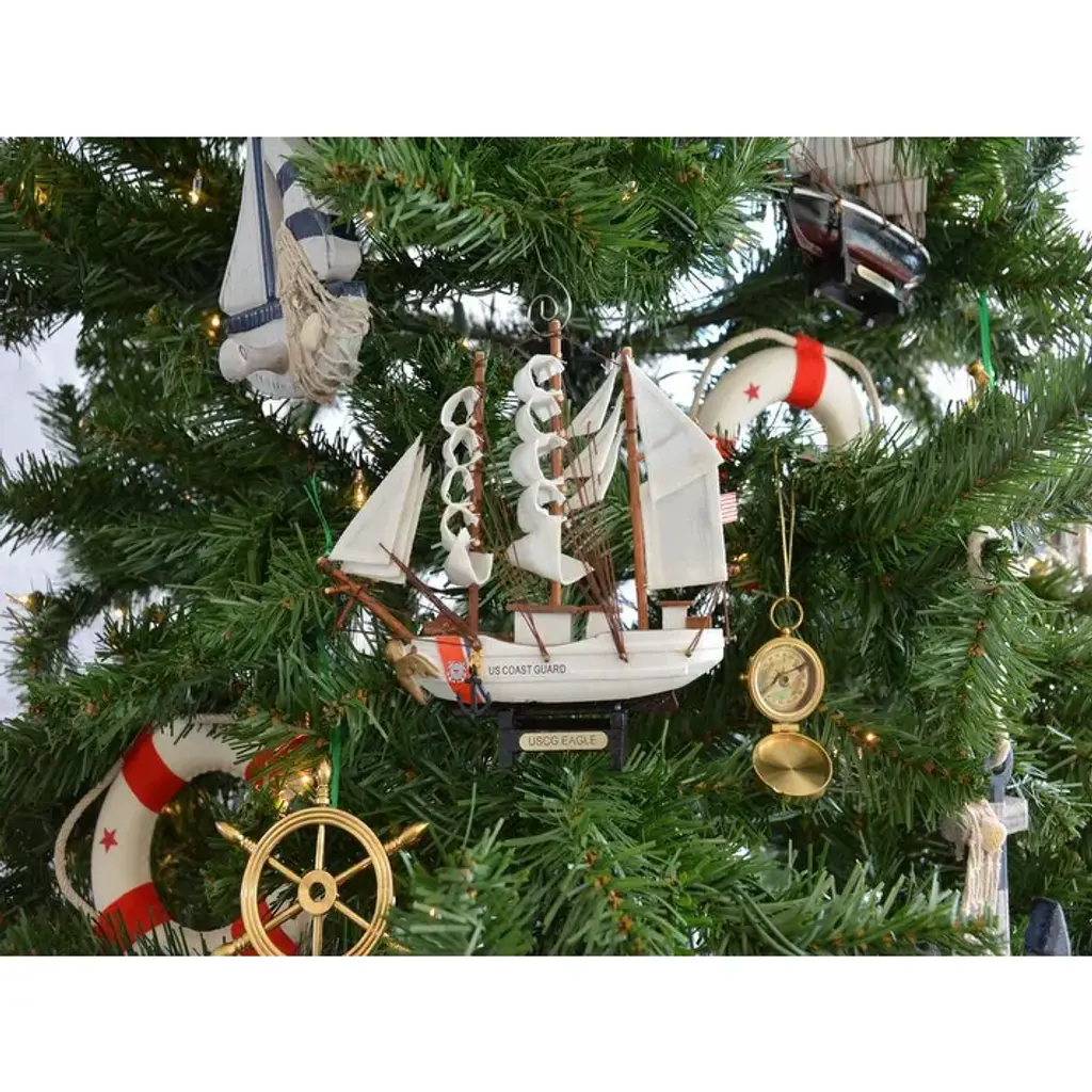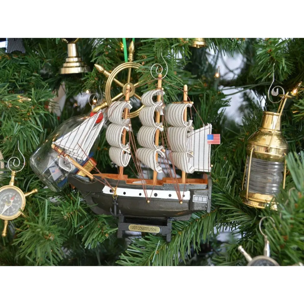 Specifications:Description: Add a festive nautical charm to your holiday décor with this dark green USS Constitution Model Ship Christmas Tree Ornament. Crafted from wood, this intricately designed ornament measures 7" L x 2" W x 6" H, making it a standout addition to your Christmas tree. Inspired by the iconic sea-faring vessel, this ornament beautifully blends maritime history with holiday cheer. Designed for easy hanging, it brings a unique touch to seasonal decorations, making it a perfect choice for those who appreciate nautical themes and timeless holiday accents.