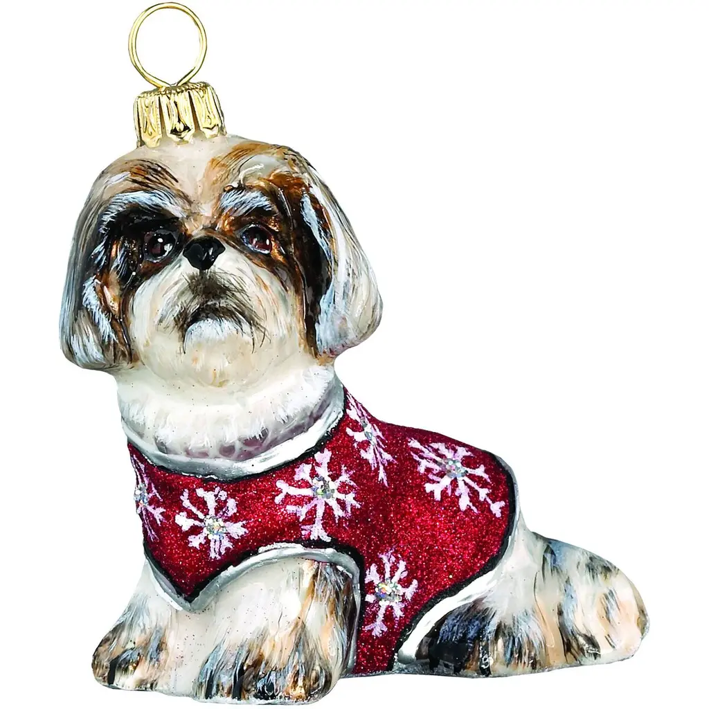 A festive addition to the tree, this Shih Tzu ornament is handcrafted of mouth-blown glass and hand-painted by artisans in Poland.