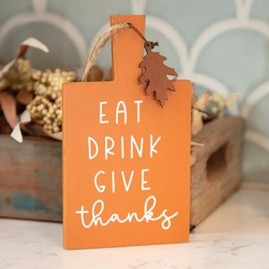 Eat Drink Give Thanks Cutting Board Sign Ornament - H- 7.00 In. W - 0.25 In. L - 4.00 In. - Orange