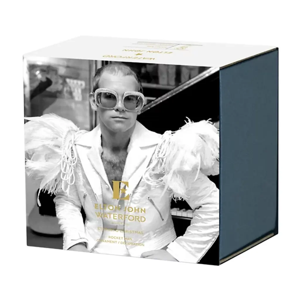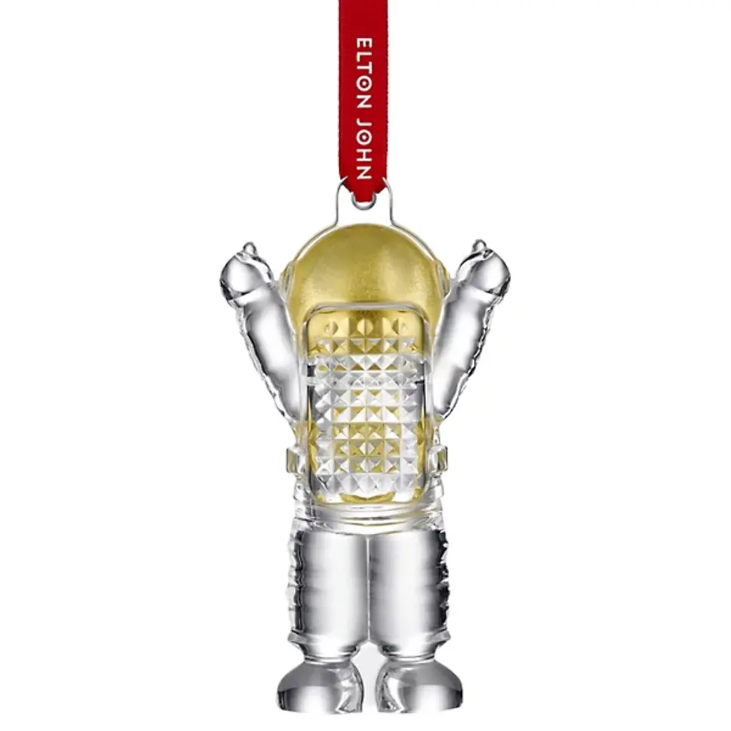 The Elton John Rocket Man Ornament from Waterford recreates the spaceman protagonist from one of the musician's most famous songs through detailed crystal construction. Part of the Step Into Christmas Collection, the ornament captures the intrepid spaceman character in three-dimensional form. Intricate cuts across the surface catch and refract light, while the hand-painted visor adds realistic detail to the astronaut's helmet. Lead-free crystal construction ensures durability while maintaining the optical clarity needed to showcase the precise cutting work.