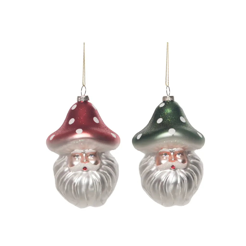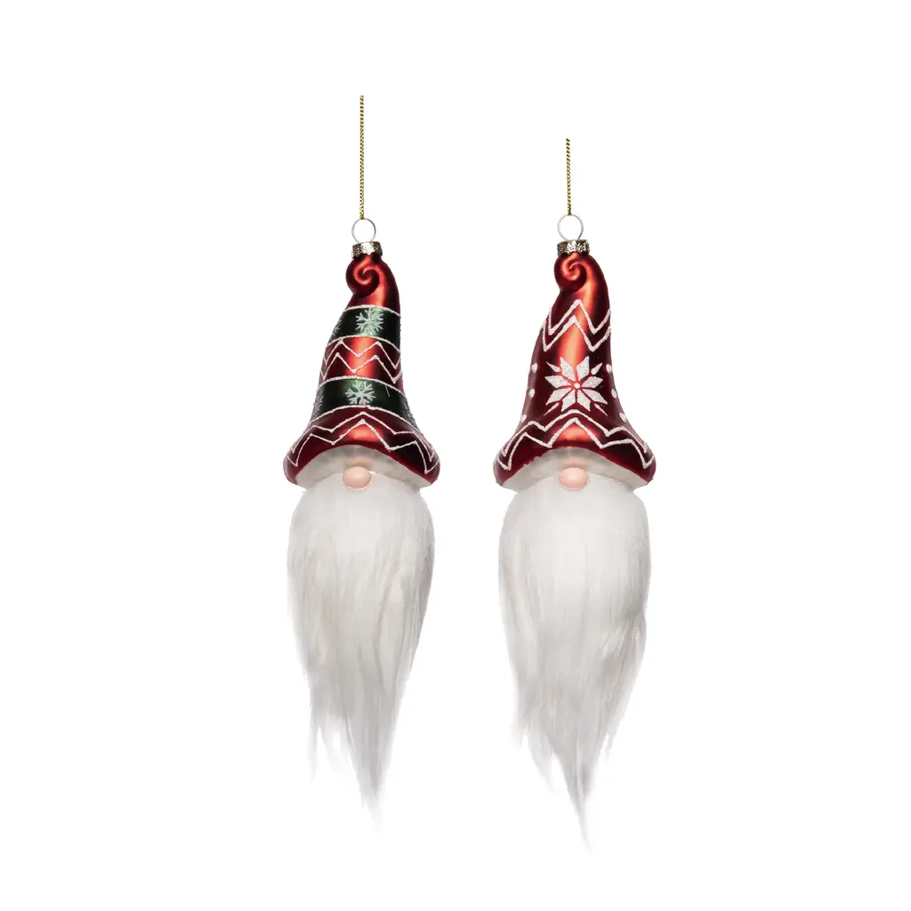Description : The Evergreen Tree Gnome Ornament is an assortment of two ceramic ornaments in the shape of Christmas gnomes. One gnome is short and one is tall, and both feature a white beard, round nose, and a pointed green tree hat. The gnomes are covered with a dusting of silver sparkles, for a snow-frosted effect, and include a jute rope loop at the top for a hanging display. Specifications :