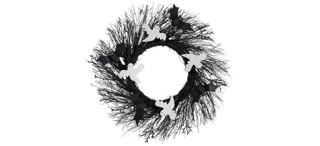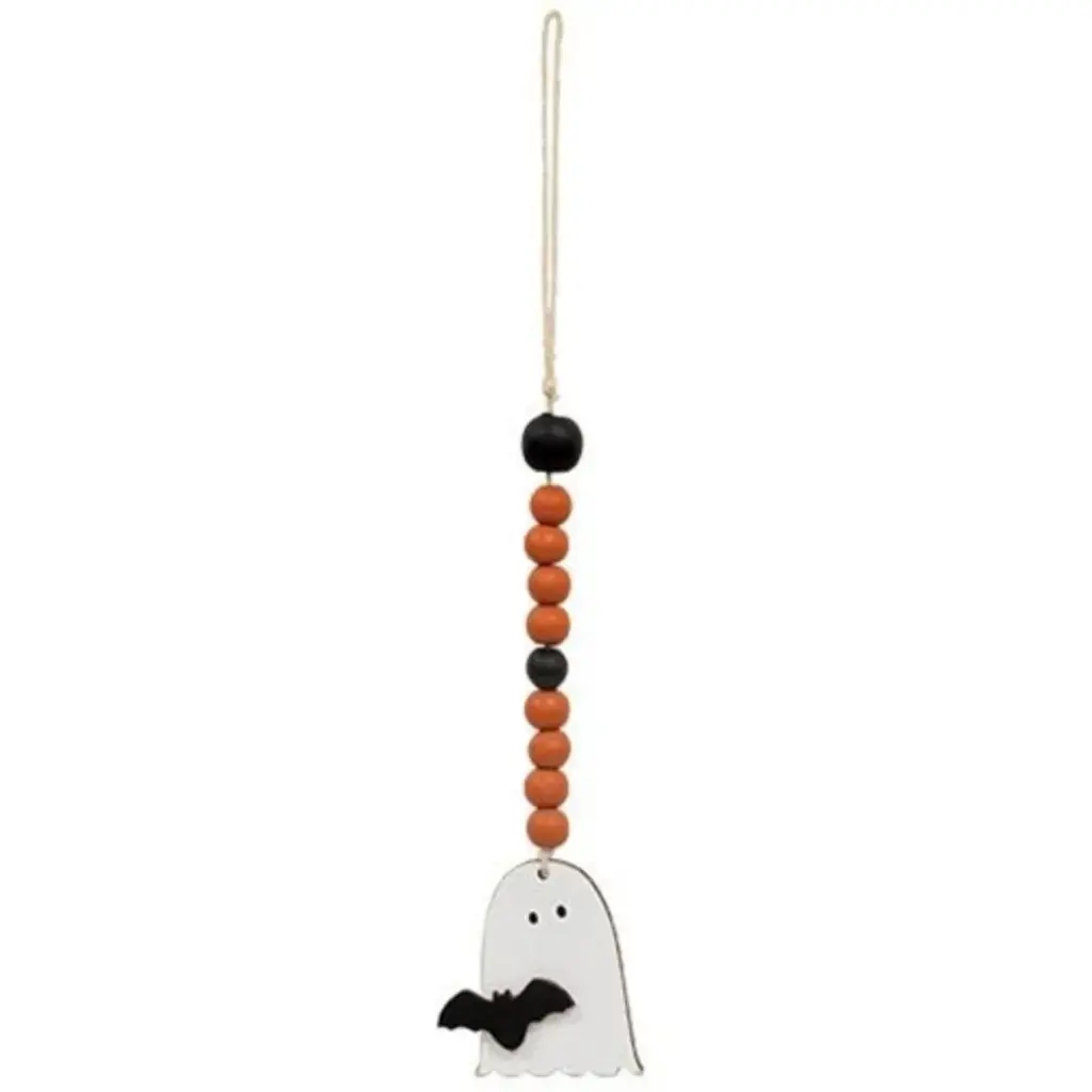 Description :Ghost Ornament is a felt ornament with a ghost design and jute hanger. Ornament is white with black bead eyes, dried moss, and a cut-out bat accent that reads, "boo" in white text Specification :