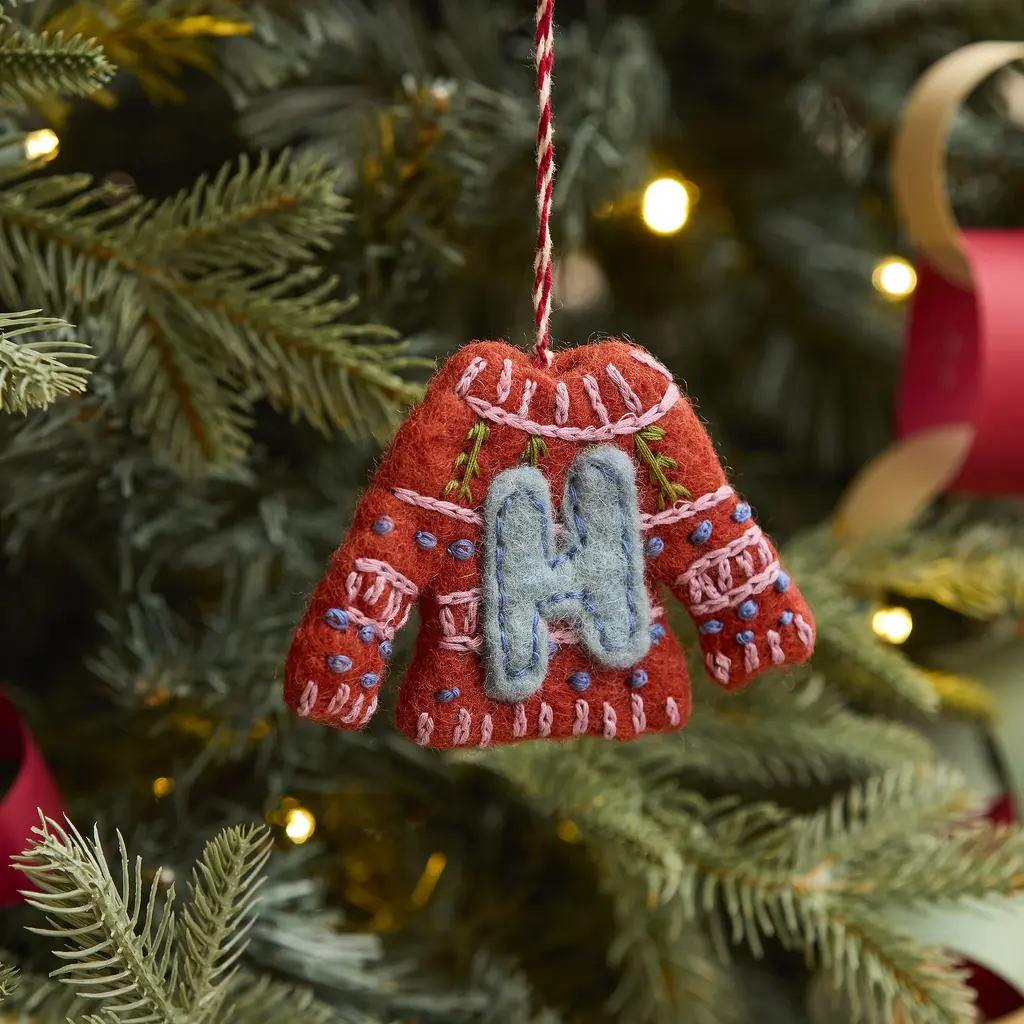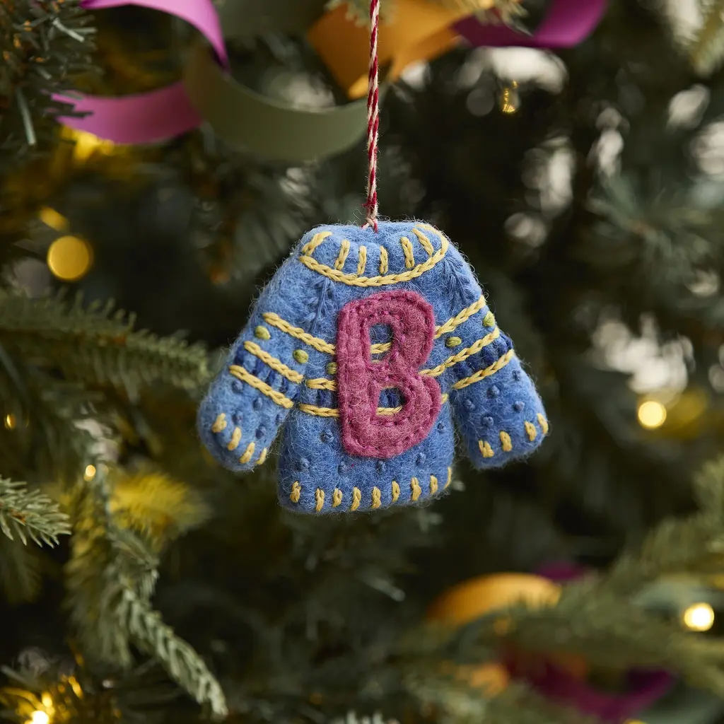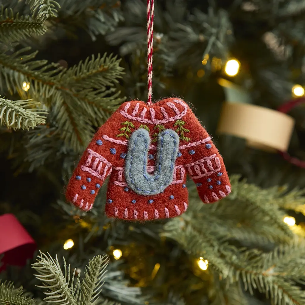 Felt Monogrammed Initial Holiday Sweater Ornaments