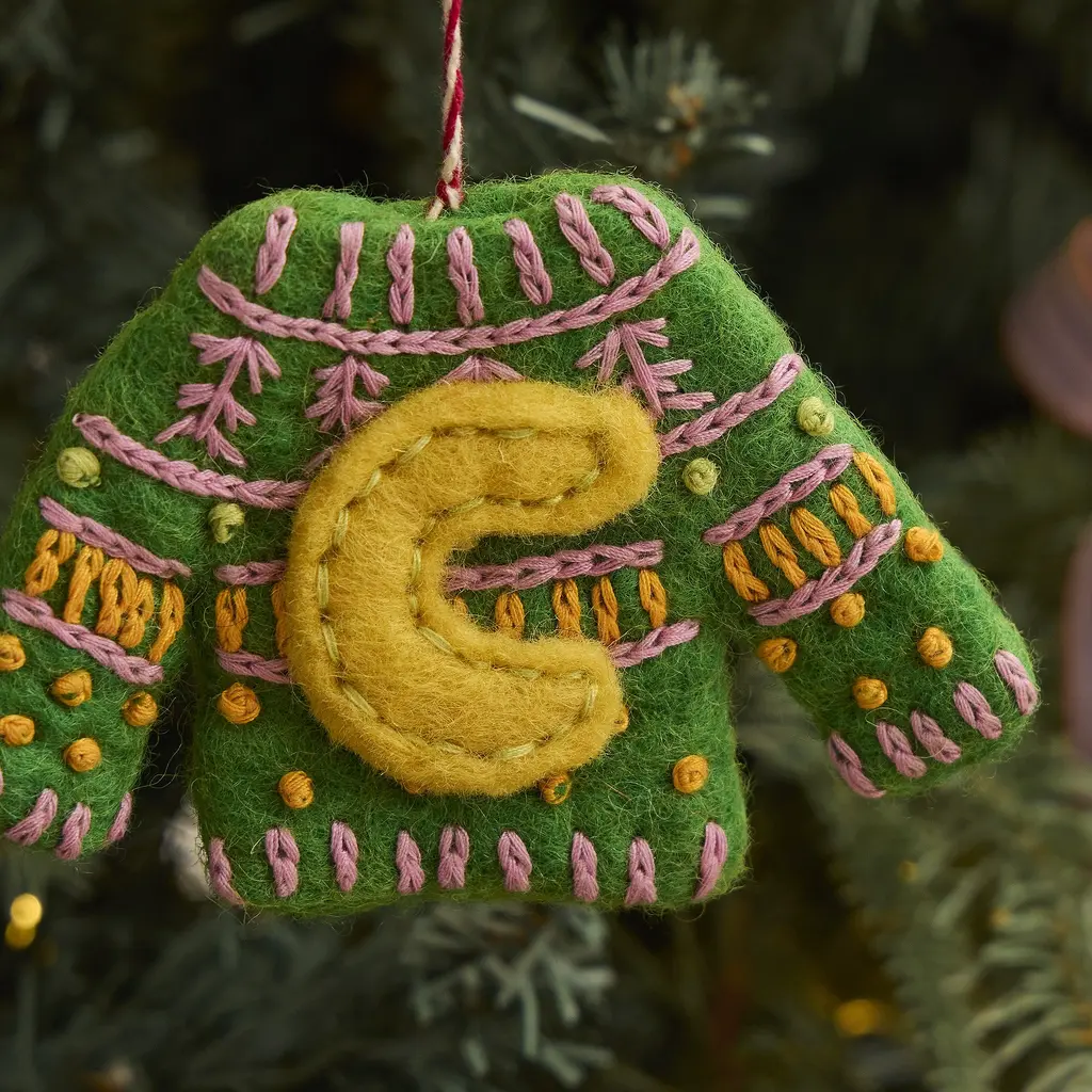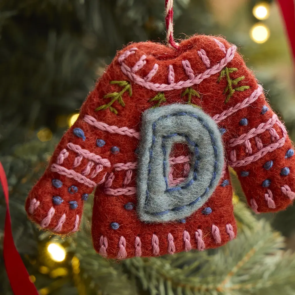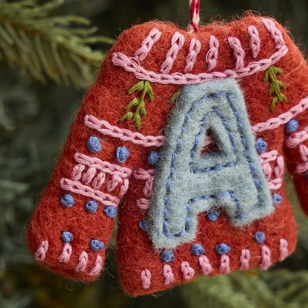 Felt Monogrammed Initial Holiday Sweater Ornaments