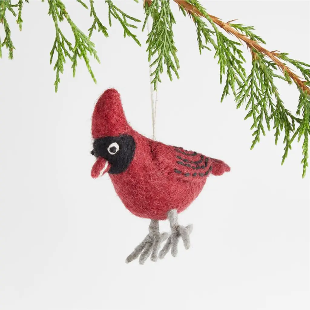 Detailed with its signature black face and red feathers, our cardinal Christmas tree ornament graces the tree with avian charm. Each bird Christmas tree ornament is made of pure wool that's been felted, shaped and detailed by hand by skilled textile artisans in Nepal. Create a flock with other birds featured in this special collection of felted Christmas tree ornaments.