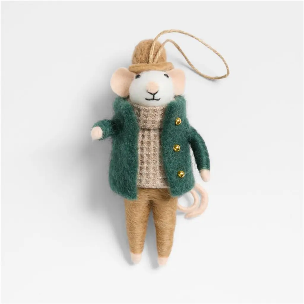 Felted Wool Mouse With Cozy Dress Christmas Tree Ornament