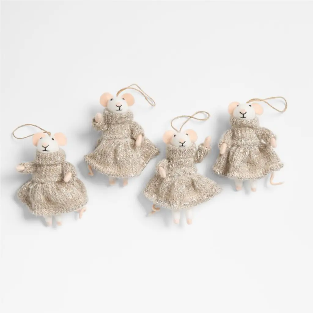 Bundled up for winter, our felted animal wool ornaments add old-fashioned sweetness and charm to the Christmas tree. This curly-tailed mouse is ready for a holiday party or Nutcracker matinee, all dressed up in a cozy-chic sweater dress with plenty of sparkle. A fashion-forward presence on your tree, our exclusive mouse ornament also makes a sweet and snuggly gift topper.