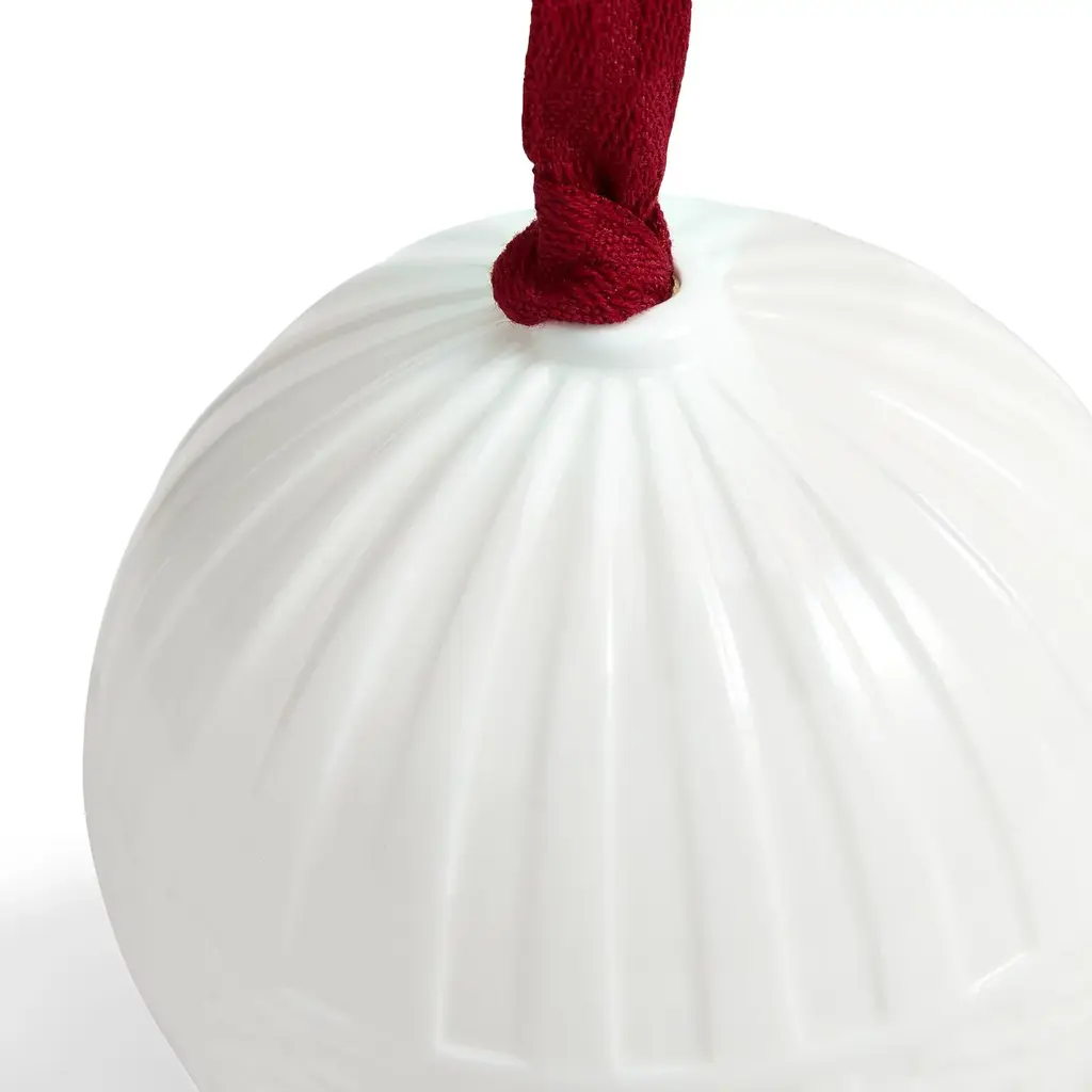 A celebration of classic texture and form, the Festive Fluted Ornament from Wedgwood brings modern elegance to your holiday decor. This exquisite ornament is handcrafted from fine bone china and showcases a detailed fluted pattern inspired by the extensive Wedgwood archive. The classic vertical grooves are given a contemporary twist, creating a sophisticated and textural look that beautifully catches the light. A fusion of heritage design and festive elegance, it’s a beautiful memento for the holiday season. Highlights: