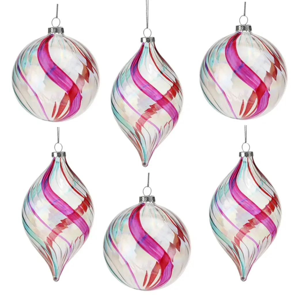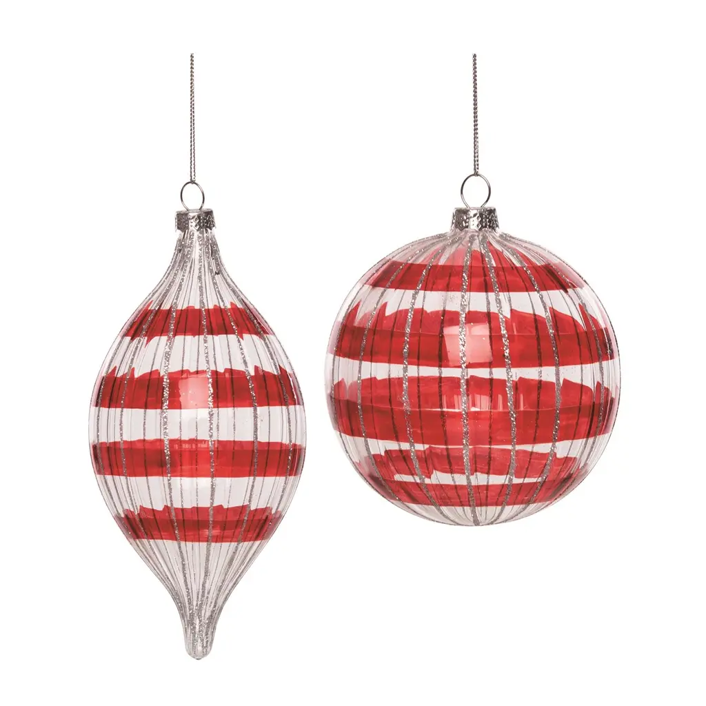 Specification:Description:Add a whimsical touch to your Christmas tree with this stunning set of Finial Tinsel Ornaments. Featuring 12 pieces and three assorted designs, the festive red tones paired with the modern striped finial design and colorful tinsel filling accents are the perfect combination to create a memorable display. The quality glass and plastic composition with delicate silver string hanger is sure to endure for seasons to come. Whether you're adding a touch of cheer to your home or gifting to a loved one, these ornaments will definitely bring holiday spirit to your home.