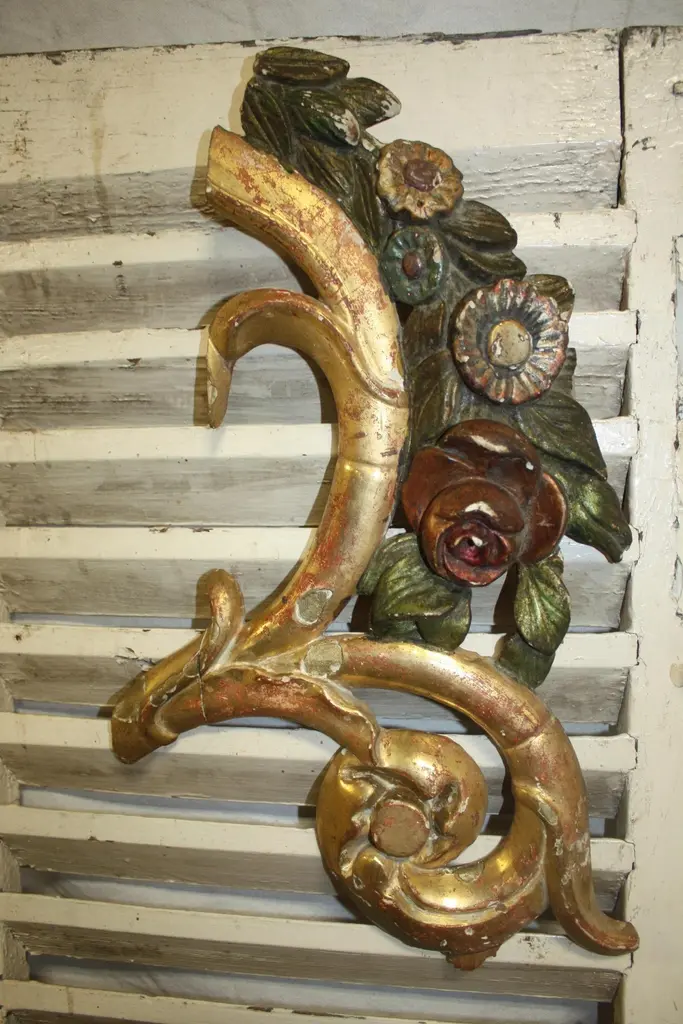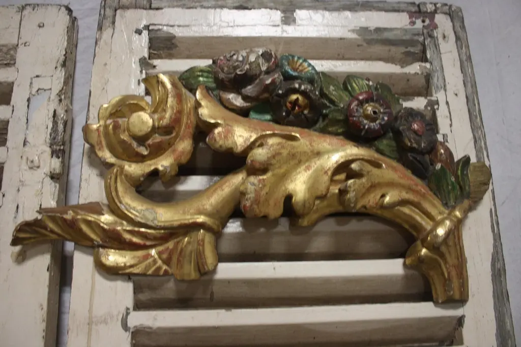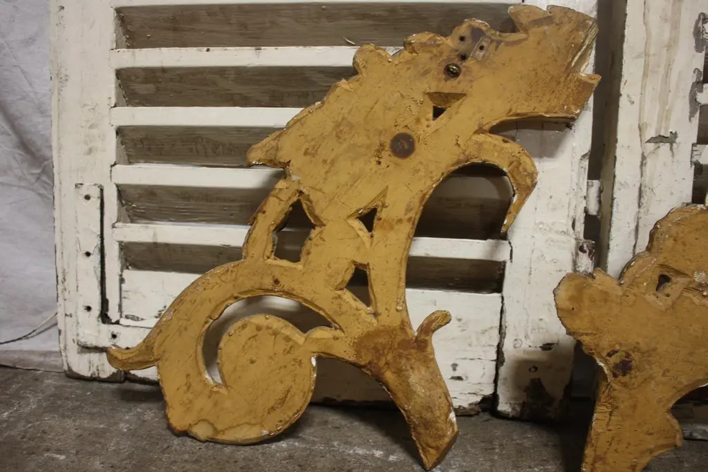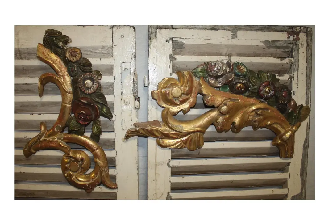 French 19th century ornamentsDimensions of the left ornament is 1.75in D x 11.5in. W x 19in. HDimensions of the right ornament is 2.25in D x 21.5in. W x 12in. H.