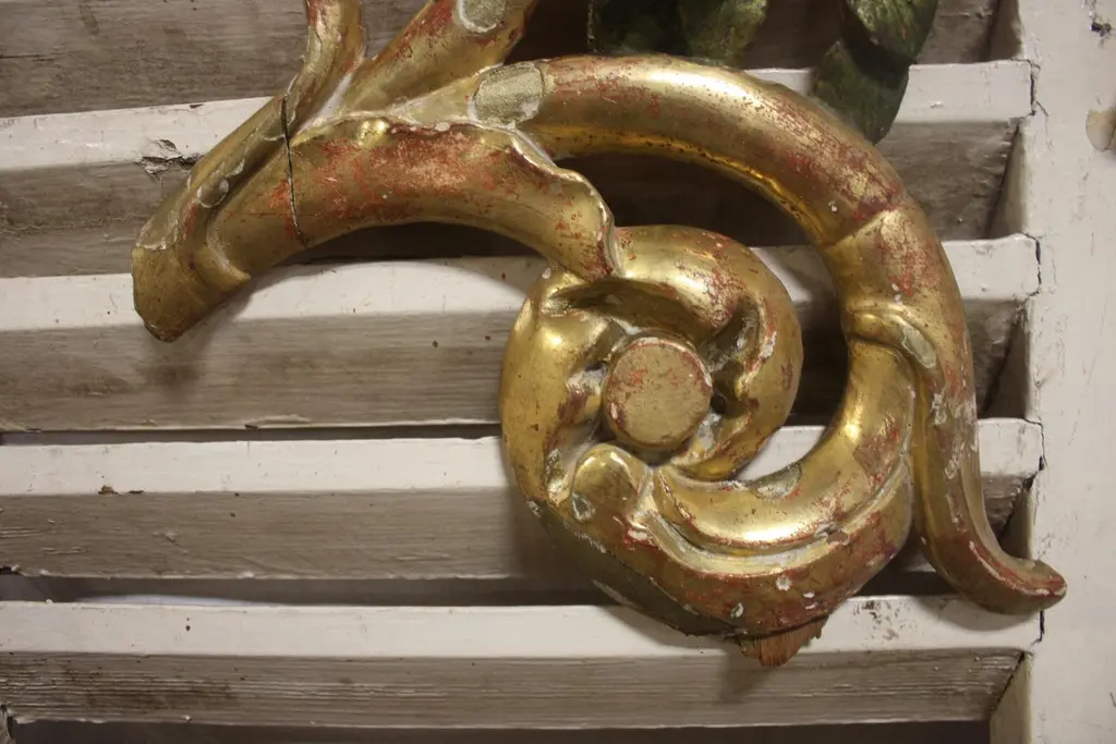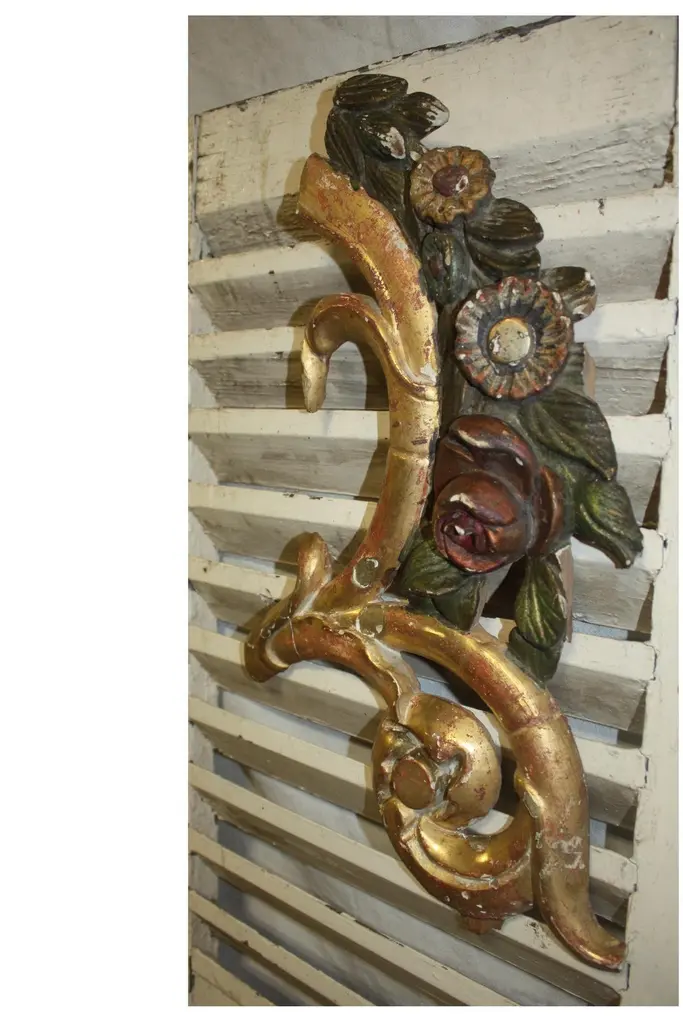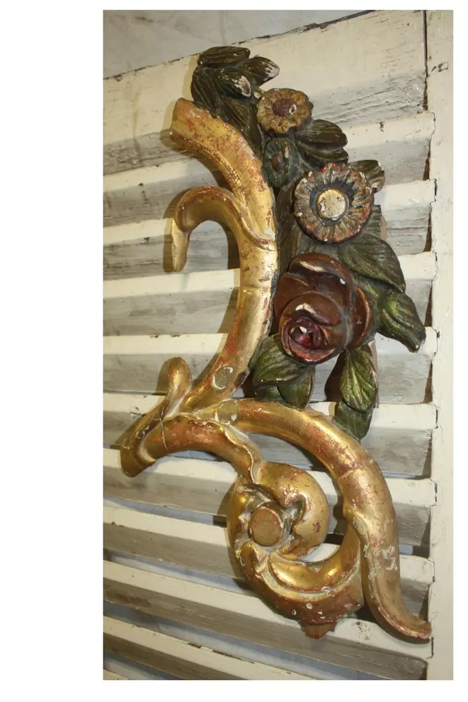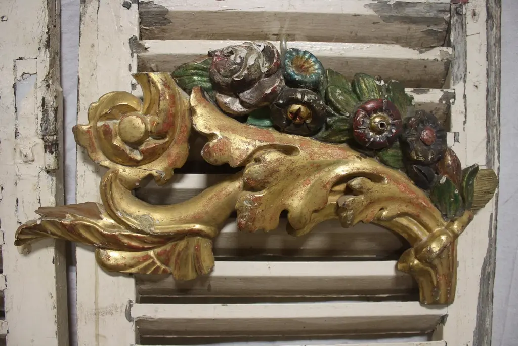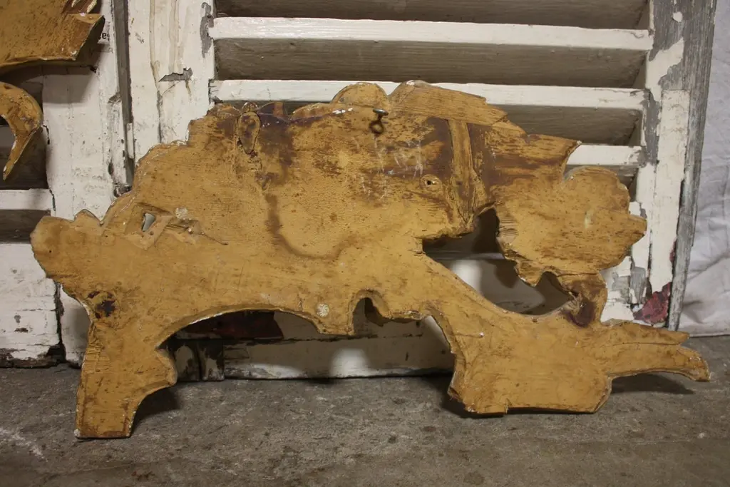 French 19th century ornamentsDimensions of the left ornament is 1.75in D x 11.5in. W x 19in. HDimensions of the right ornament is 2.25in D x 21.5in. W x 12in. H.