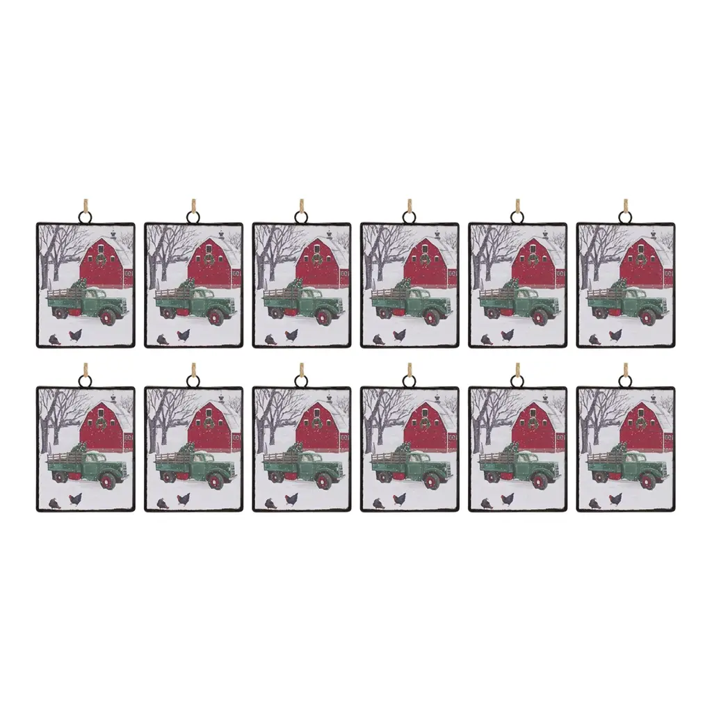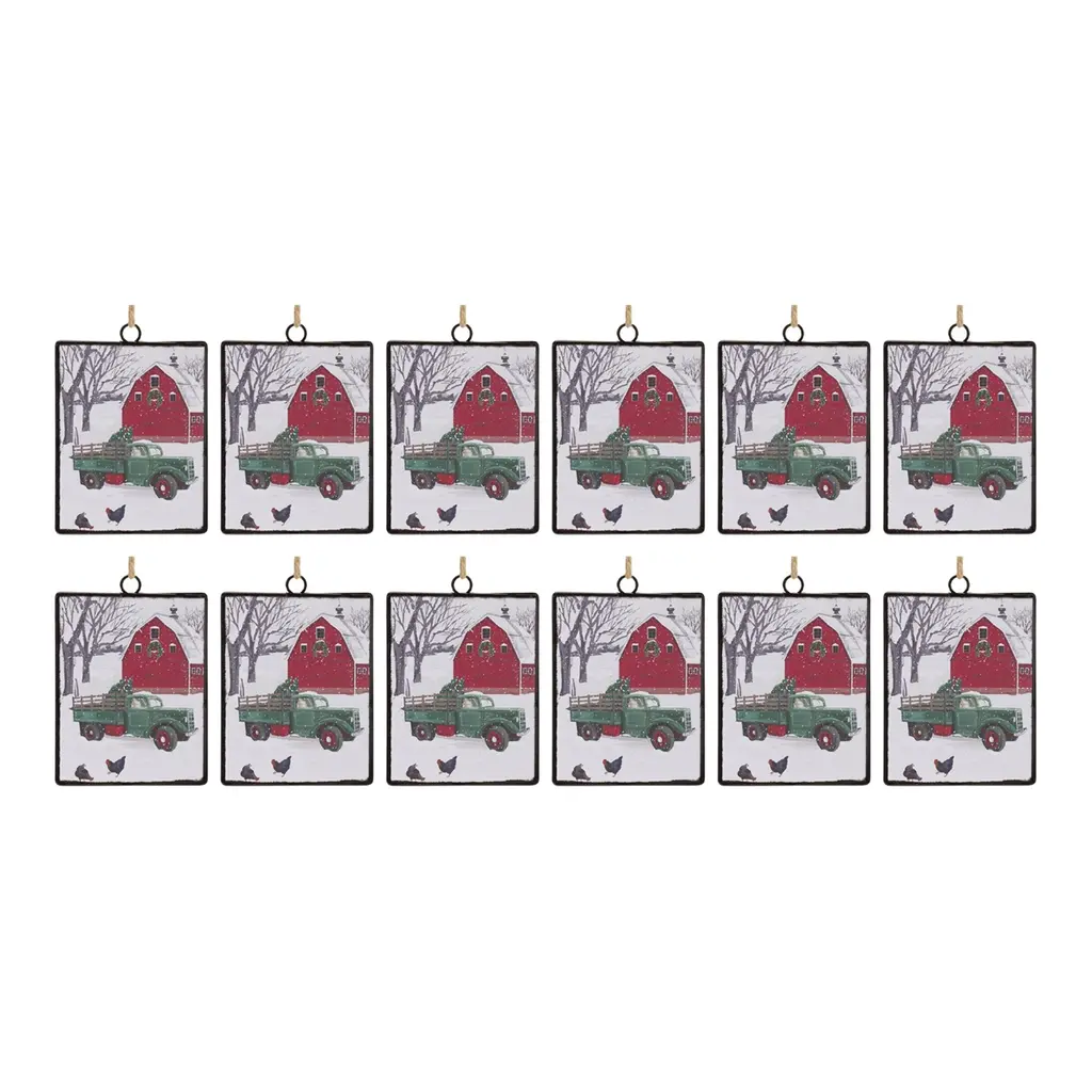 Specifications:Description:Add a rustic touch to your Christmas Tree with this beautiful set of Winter Barn Ball Ornaments. Featuring 12 pieces, this set's wintry red and white tones, traditional painted barn design, and glitter frosted pine tree accents are the perfect combination to create a memorable display. The quality glass composition with silver string hanger is sure to endure for seasons to come. Whether you're adding a touch of cheer to your home or gifting to a loved one, these ornaments will definitely bring smiles to your home. Recommended for indoor use only.