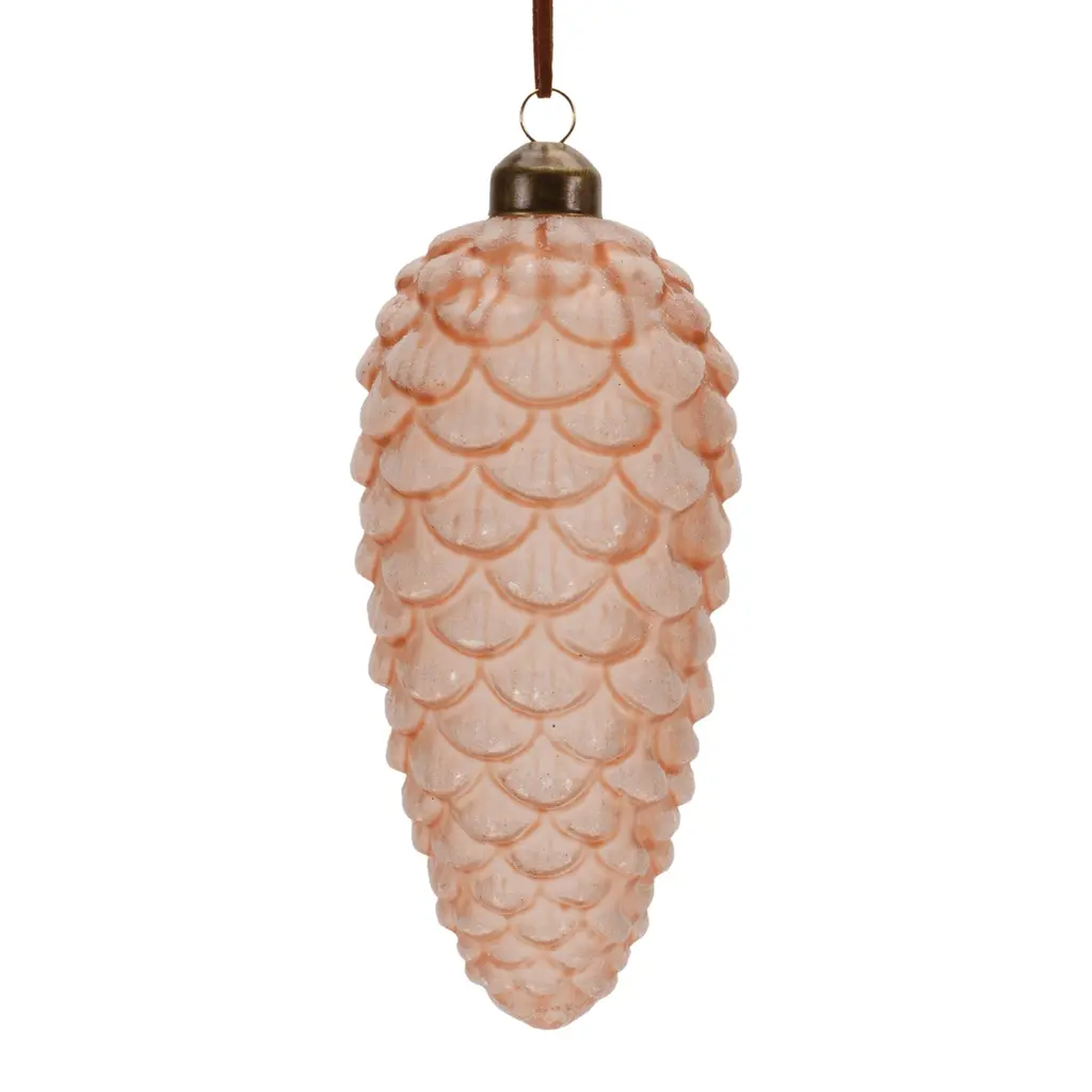 Add a woodland touch to your Christmas tree with this stunning set of Frosted Glass Pinecone Ornaments. Featuring six pieces and two assorted sizes, the wintry amber and pink tones paired with the rustic pinecone design with frosted finish are the perfect combination to create a memorable dipslay. The quality glass composition with delicate leather string hanger is sure to endure for seasons to come. Whether you're adding a touch of cheer to your home or gifting to a loved one, these ornaments will definitely bring holiday spirit to your home.