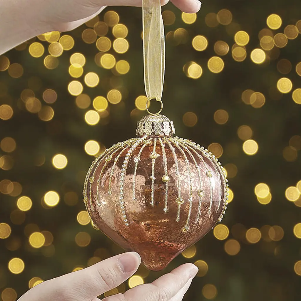 Capture the flavor of the season with shades of orange-brown and rich red, drizzled with hand-applied details. Beadwork, rhinestones and glitter enhance the spicy warmth of these blown-glass ornaments. The carefully curated blend of shapes, textures, finishes and motifs creates the look of an heirloom collection. Painted and embellished by hand 30-piece and six-piece sets 30-piece set includes ball, onion, teardrop and finial shapes Each ornament is topped with a metal cap and ribbon for hanging Ornament length does not include ribbon; ribbon is 3"—3-1/2"L For indoor use Store in original packaging or Ornament Storage Box (sold separately) Imported A Frontgate exclusive. At Frontgate, our primary focus is quality. We guarantee that every product we sell will stand up to the supreme test – our customers' satisfaction. To learn more about our policies, visit our Shipping & Processing, Returns & Exchanges and Warranty & Price Guarantee pages. Capture the flavor of the season with shades of orange-brown and rich red, drizzled with hand-applied details. Beadwork, rhinestones and glitter enhance the spicy warmth of these blown-glass ornaments. The carefully curated blend of shapes, textures, finishes and motifs creates the look of an heirloom collection. Painted and embellished by hand 30-piece and six-piece sets 30-piece set includes ball, onion, teardrop and finial shapes Each ornament is topped with a metal cap and ribbon for hanging Ornament length does not include ribbon; ribbon is 3"—3-1/2"L For indoor use Store in original packaging or Ornament Storage Box (sold separately) Imported A Frontgate exclusive. At Frontgate, our primary focus is quality. We guarantee that every product we sell will stand up to the supreme test – our customers' satisfaction. To learn more about our policies, visit our Shipping & Processing, Returns & Exchanges and Warranty & Price Guarantee pages.