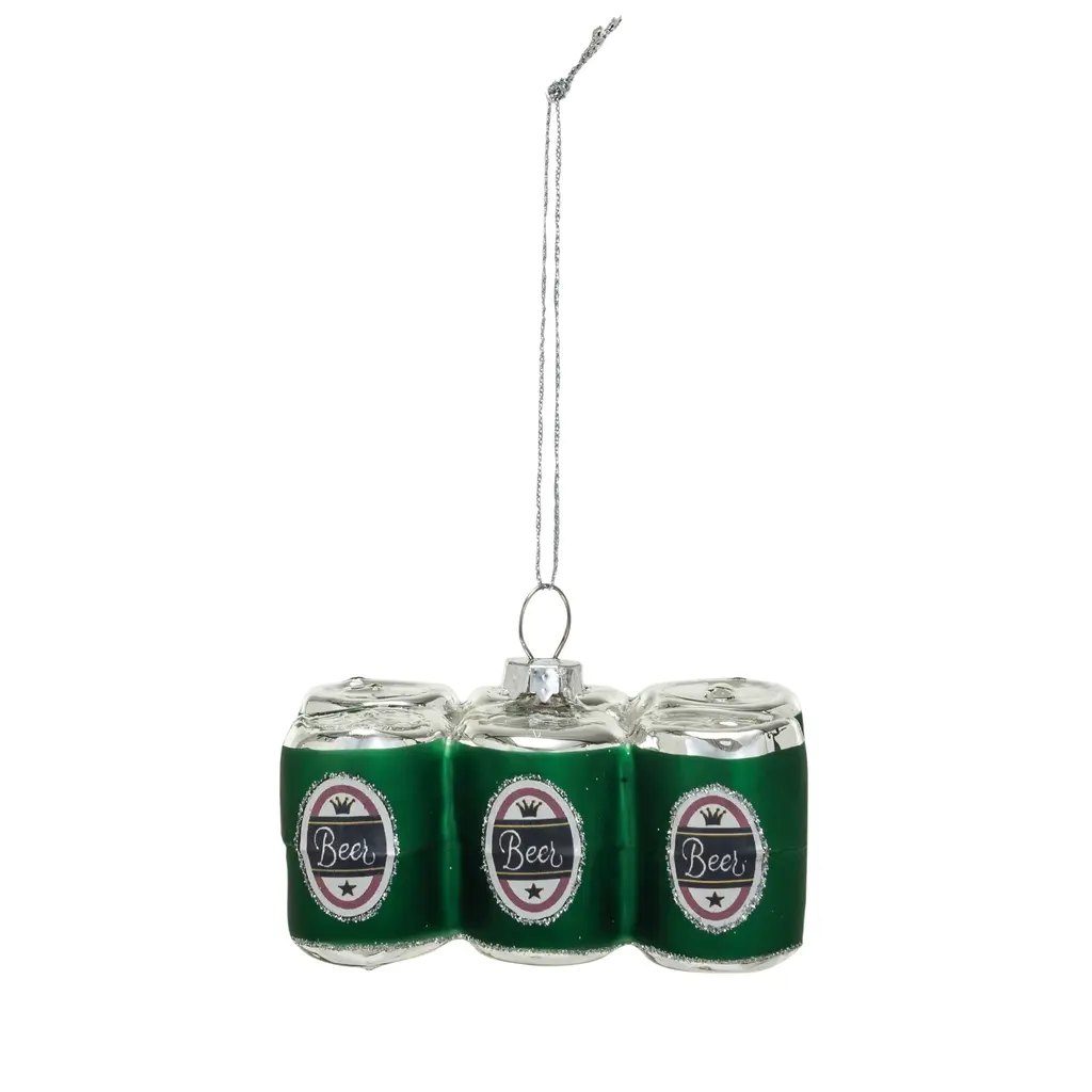 This glass six-pack beer ornament is a cheerful tribute to brews and good times. A unique glass ornament that is created into the form of a six-pack of beer and has multicolored embellishments on the outside. The ideal way to add a whimsical touch to any holiday décor, this humorous homage to beer enthusiasts is definitely worth considering. Ideal for adorning the Christmas tree or as a one-of-a-kind present for someone who is passionate about craft beer. Made of glass of superior quality, which guarantees a glossy surface and long-lasting durability for usage throughout the holiday season. Measuring 3.25 inches in length, 2 inches in width, and 1.75 inches in height, it is perfect for adorning the Christmas tree or adding a quirky touch to the collection.Features: