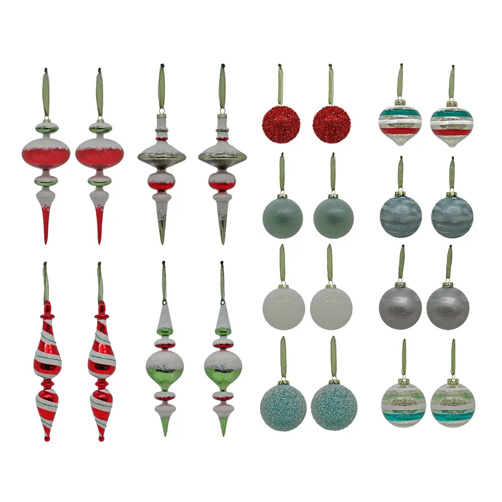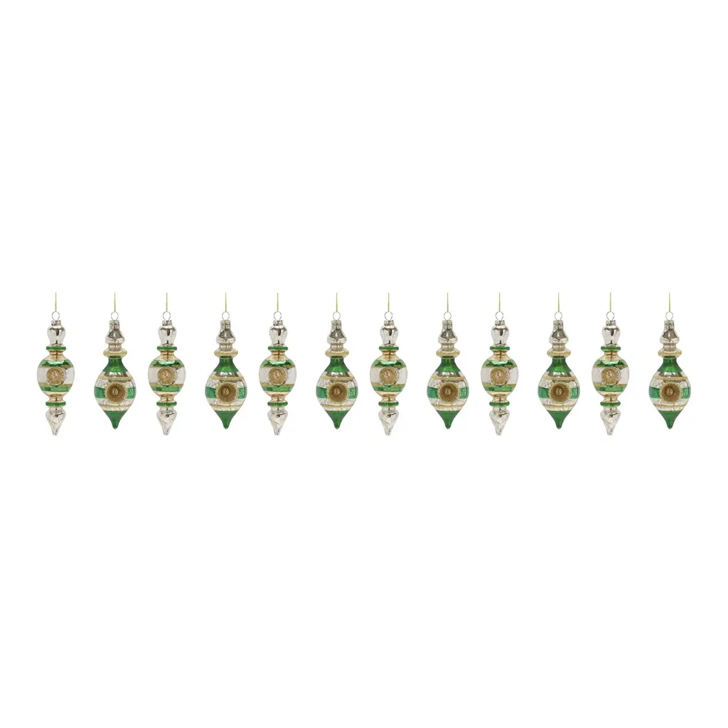 Glass Reflector Ornament Drop (Set Of 12) - 5.25 X 1 X 10.5" - Multi