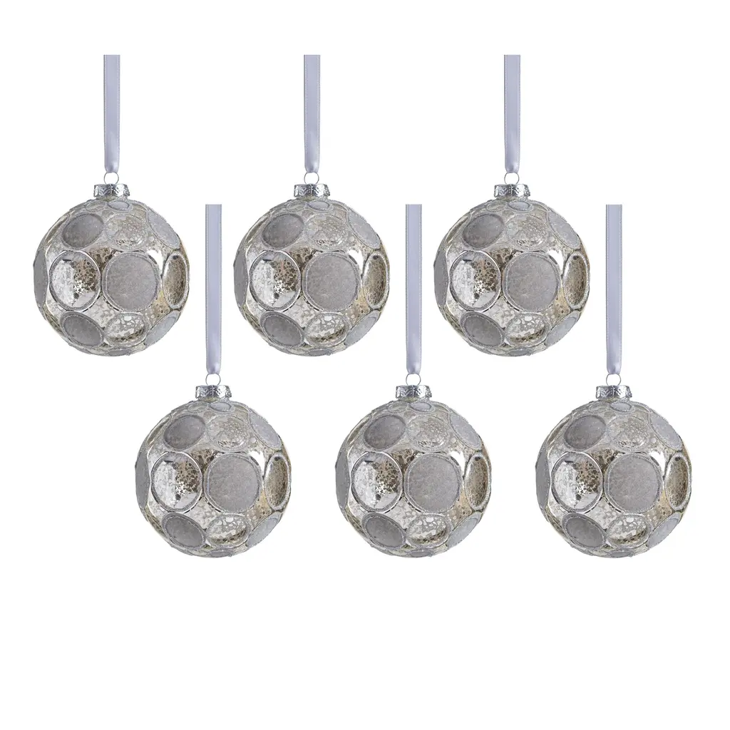 Gleaming Serenity 3.25" Glass Ball Ornaments, Set Of 6 - Silver