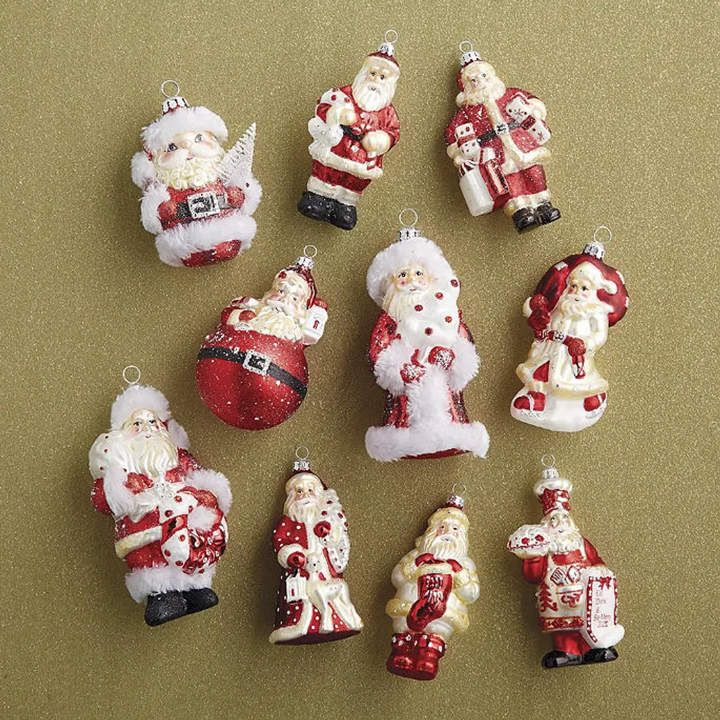 Make your Christmas tree enchanting with this delightful set of Santa ornaments. These whimsical ornaments feature a beautifully painted Santa design, complete with present accents, adding a cheerful touch to your holiday decor. Whether decorating your own tree or gifting to loved ones, these charming Santa ornaments are sure to bring smiles and a jolly atmosphere to your home during the festive season. Product Features: 12-piece set Two assorted ornaments with painted Santa Accented with presents and candy canes Ornament reads "Merry Christmas to you!" Comes ready-to-hang on a silver string hanger Equipped with silver ornament cap Perfect addition to your holiday tree decoration For indoor use only Dimensions: 6"H x 2.5"W x 1.5"D Material(s): glass Notes:Set includes 6 of each item shown for a total of 12
