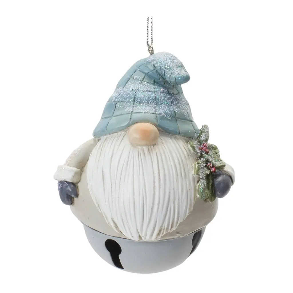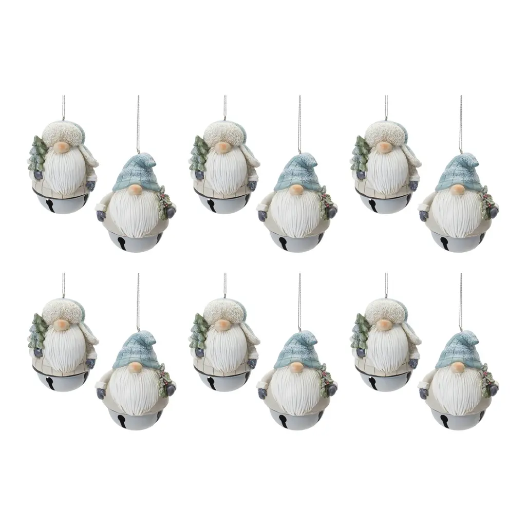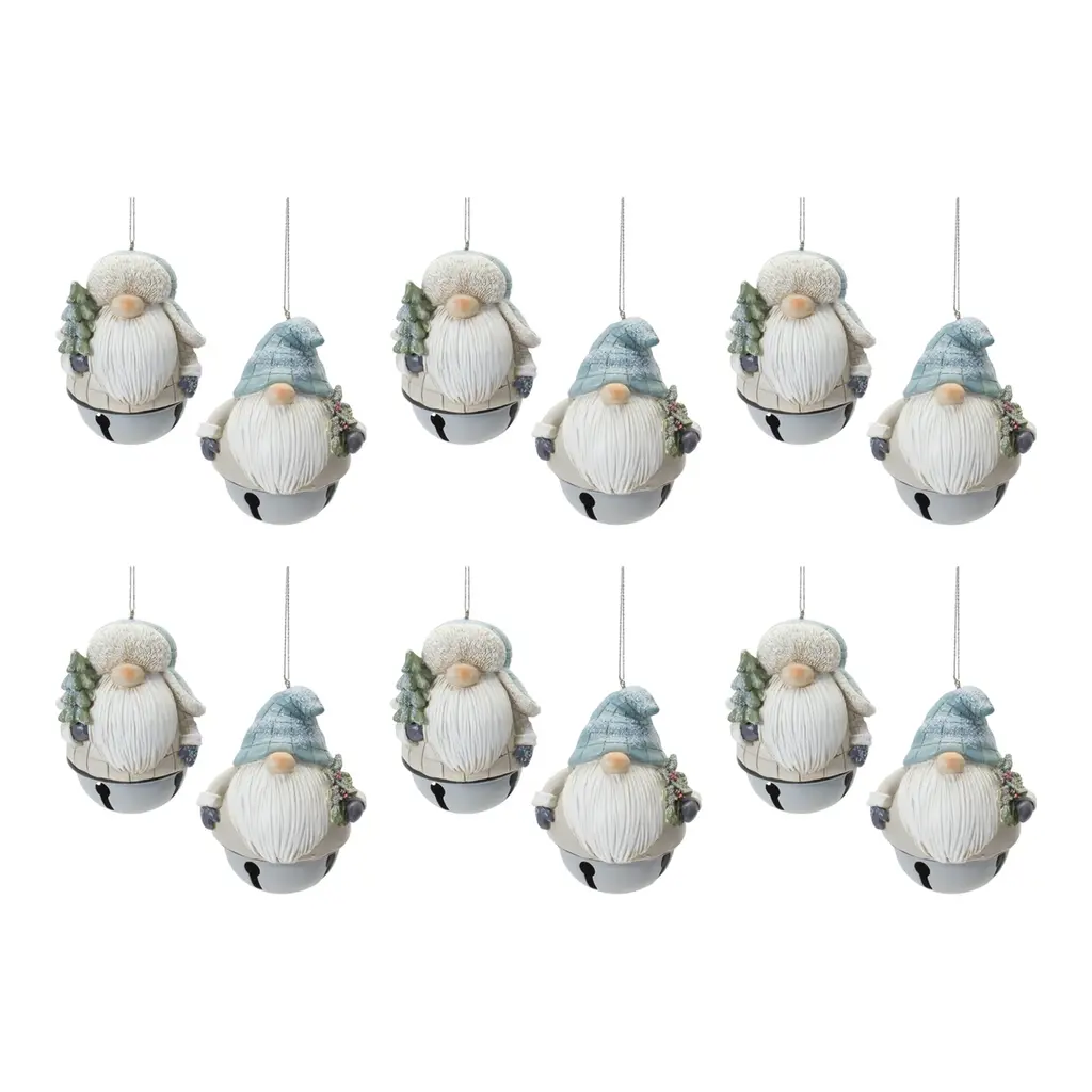 Description: Add a whimsical touch to your Christmas Tree with this beautiful set of Gnome Sleigh Bell Ornaments. Featuring 12 pieces and 2 assorted designs, this set's wintry blue and grey tones, whimsical gnome character design, glitter frosted finish, and sleigh bell bottom accent is the perfect combination to create a memorable display. The quality polyresin and stone powder composition with delicate silver string hanger is sure to endure for seasons to come. Whether you're adding a touch of cheer to your home or gifting to a loved one, these ornaments will definitely bring smiles to your home. Specification: