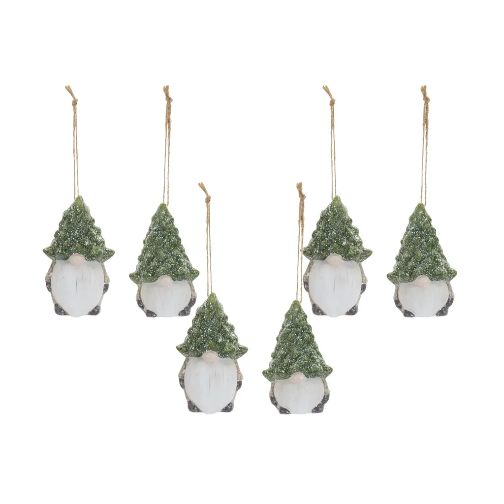 Gnome W/tree Hat Ornament (Set Of 6) - Ceramic - Green