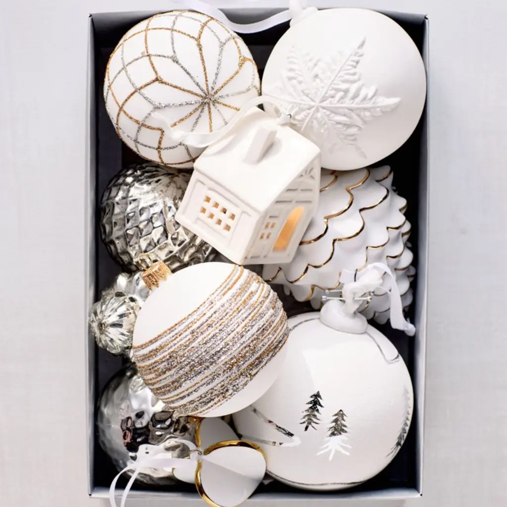 Gold Dipped White Ceramic Pinecone Christmas Tree Ornament